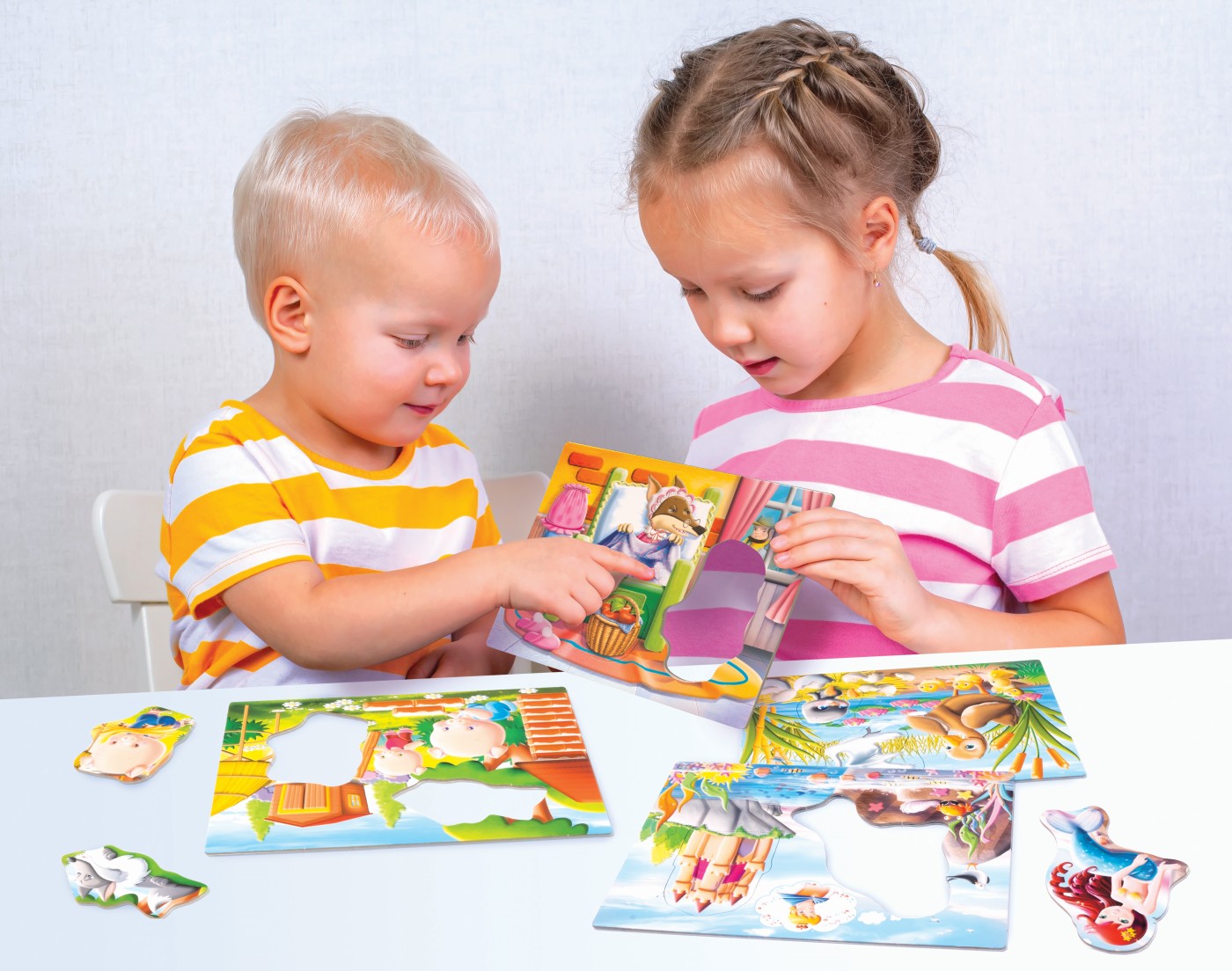 Invata copiii cele mai dulci povesti si personajele lor prin imagini frumoase. Jocul contine cartonase colorate, de dimensiuni mari, fiind usor de inteles si extrem de durabile. Prin joc, copilul isi exercita concomitent abilitatile motorii, logica si spiritual de observatie. Varsta recomandata 2 ani+.