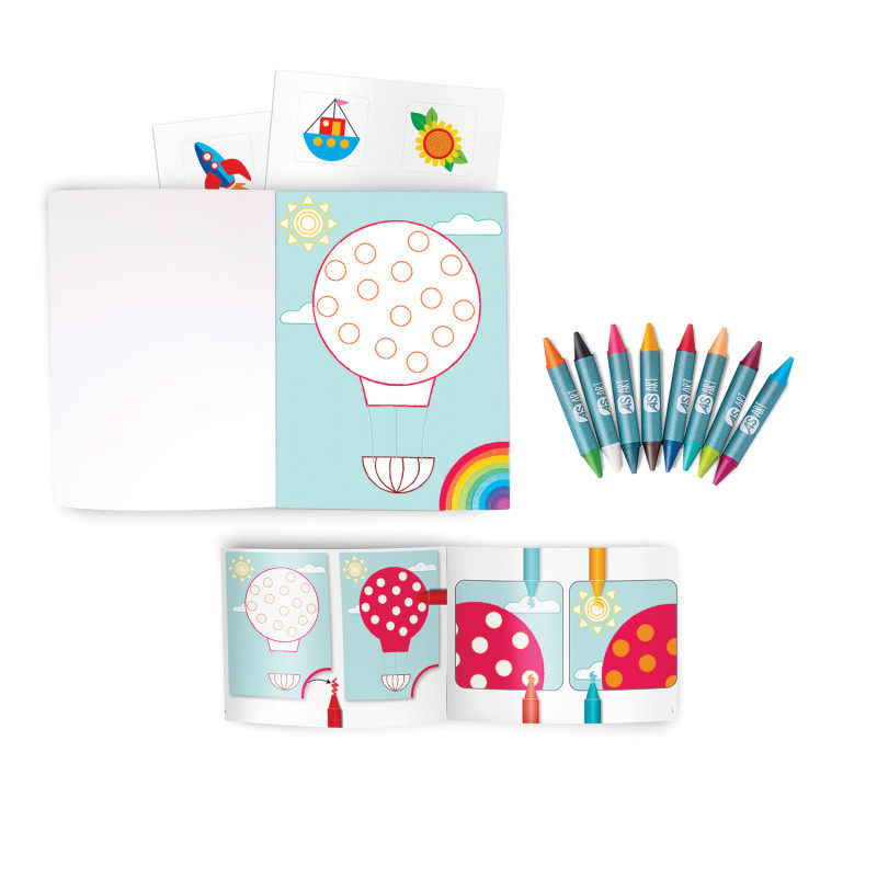Un set complet pentru pictură cu creioane cerate potrivit pentru cei mai mici creatori! Conține imagini pre-tipărite, autocolante și ghid de colorat pentru un start artistic pas cu pas. 🖍️