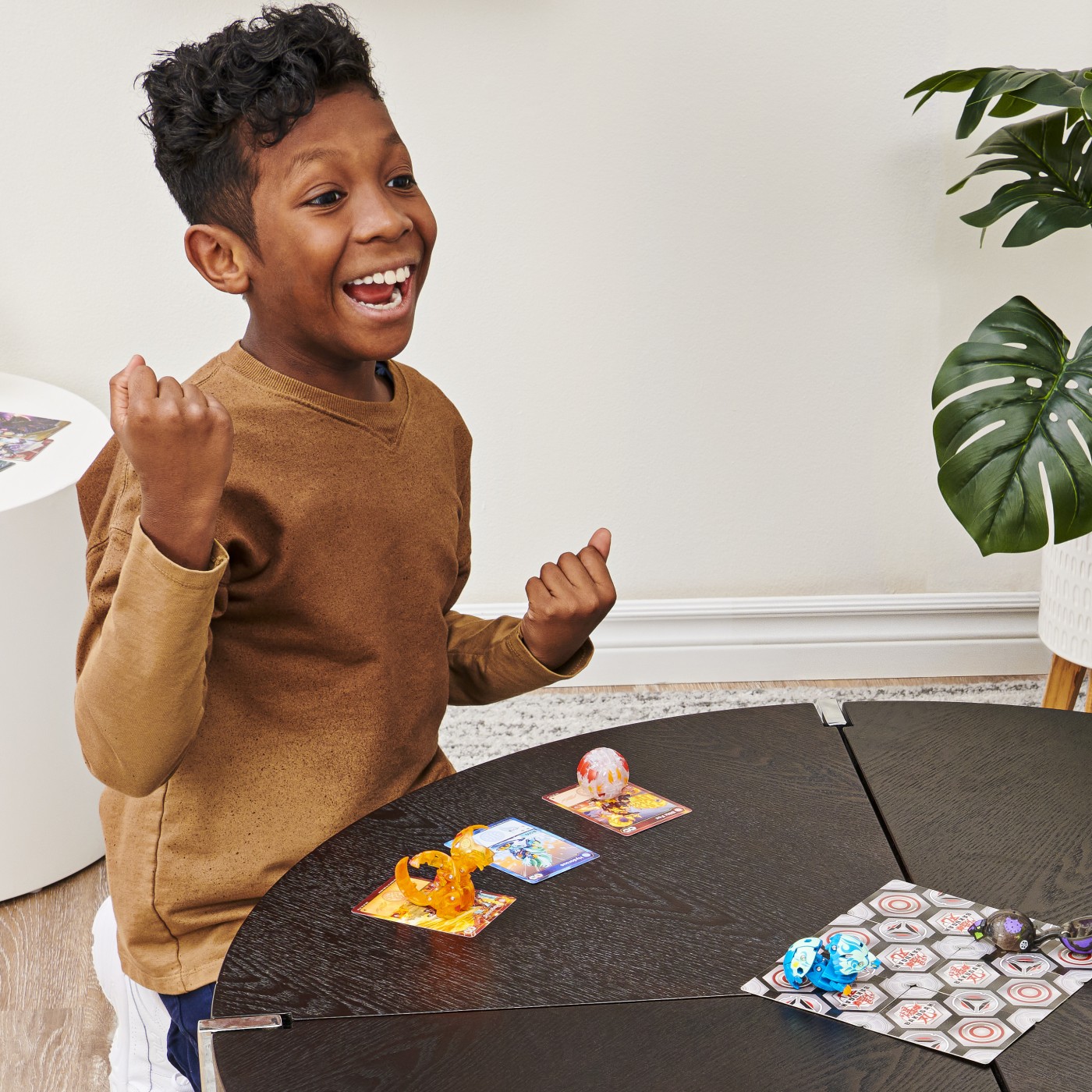 Treci la actiune cu Bakugan! Aceste creaturi feroce se deschid, transformandu-se intr-o singura rola! Include personajele clasice din sezoanele anterioare in matrite translucide noi si cu decoratiuni unice. Include 1 Bakugan si 1 carte de personaje. Acest pachet contine personajul Fangzor negru.