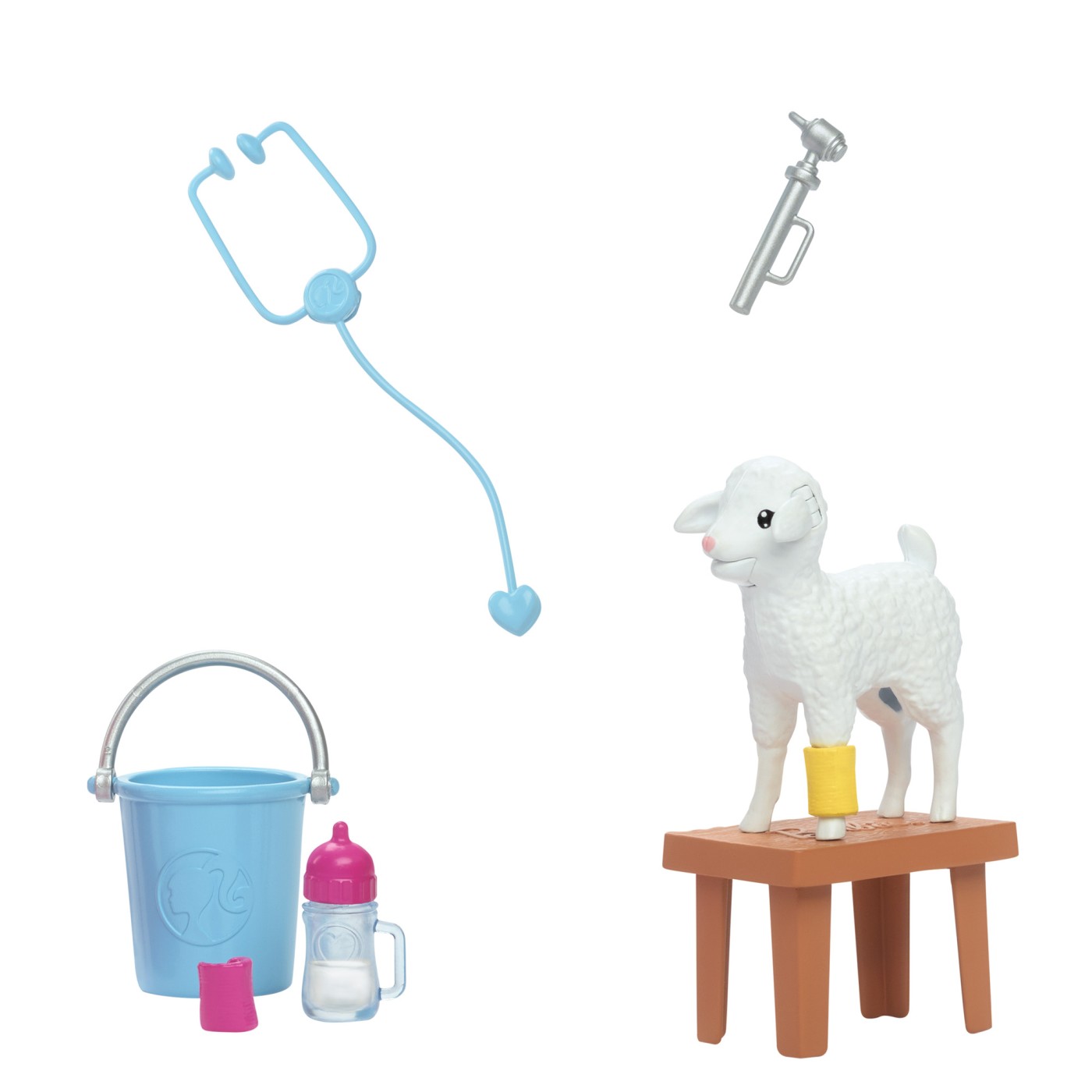 Sarbatoreste cea de-a 65-a aniversare a lui Barbie cu o colectie de papusi cu cai de cariera preferate, cum ar fi a fi veterinar la ferma. Papusa Veterinara Barbie® poarta o tinuta tematica cu pantofi roz iconici, iar setul include si 10 accesorii, inclusiv o oaie cu urechi mobile. Distractia este diversificata prin accesorii suplimentare, precum o banca, o galeata, echipament de examinare (un ciocan si un stetoscop in forma de inima) si 2 pansamente pentru oi. tinuta detasabila a medicului veterinar blond include salopete cu &bdquobuzunare&rdquo si cizme de ploaie roz, perfecte pentru o zi de munca la ferma.