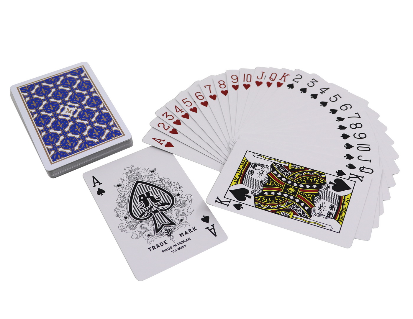 Carti de joc premium, din plastic. In pachet veti gasi 54 de carti de dimensiunea 58x88mm. Inainte de aparitia internetului, jocurile de carti erau unul dintre cele mai populare moduri de petrecere a timpului liber. Cartile de joc sunt usor de transportat, incap intr-un buzunar si au ramas un mod agreabil de divertisment. Fie ca e vorba de jocuri de carti simple, de ghicit in carti sau de pasiente solitare, cartile de joc sunt iubite si folosite pe intreg mapamondul. Carti de joc premium, din plastic. In pachet veti gasi 54 de carti de dimensiunea 58x88mm.