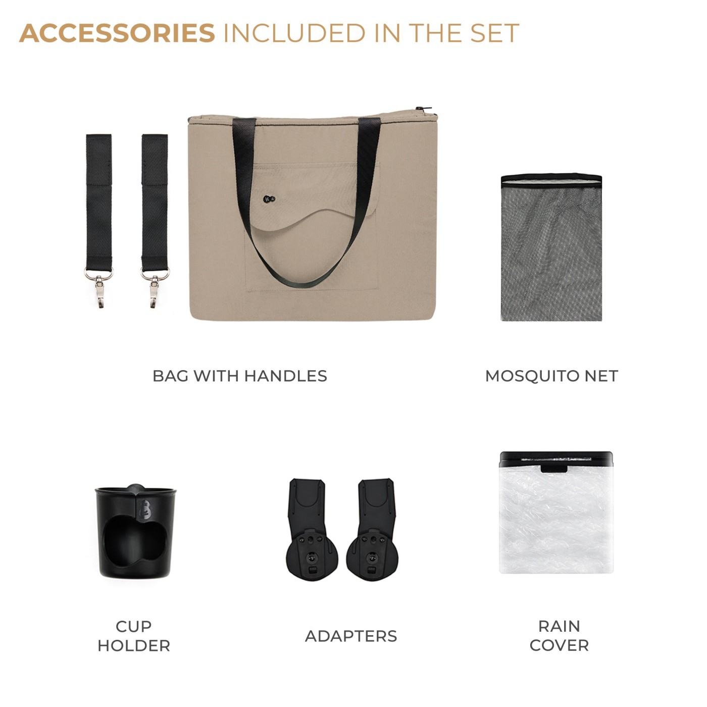 👜 Setul include: geantă pentru părinte, suport pentru pahar, husa de ploaie și adaptoare auto. Coșul generos de sub scaun suportă până la 5 kg – perfect pentru cumpărături și accesorii esențiale.