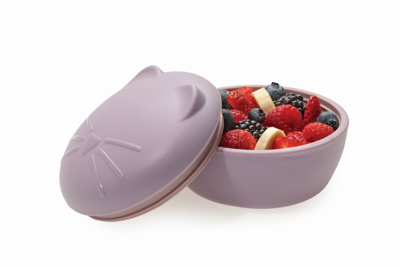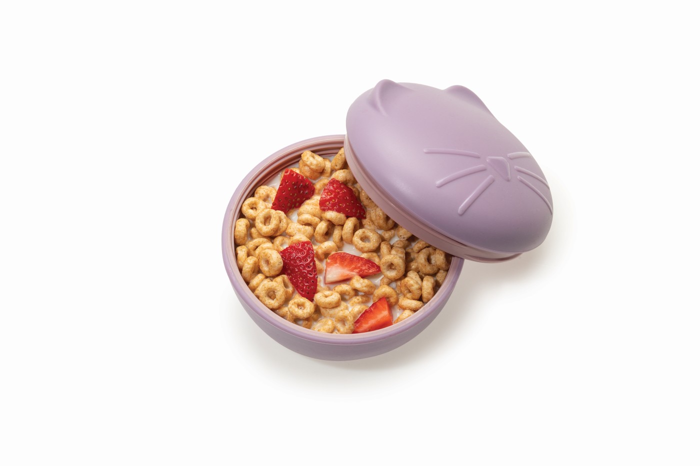 Un bol adorabil cu urechiușe și mustăți de pisică, realizat din silicon moale, cu capac etanș – ideal pentru mesele copilului tău acasă sau în deplasare!