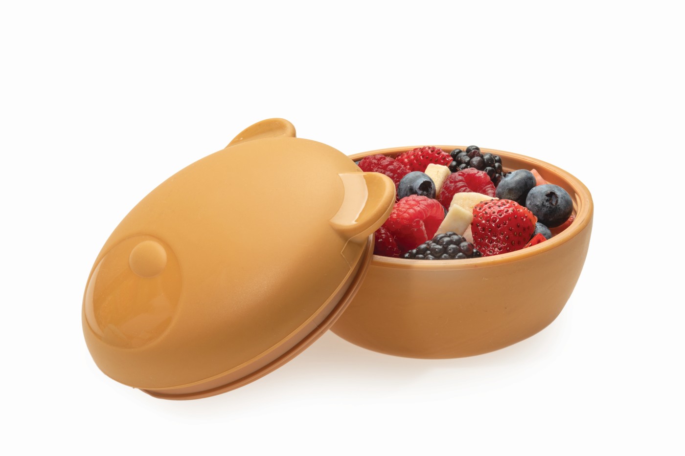 Un bol simpatic cu urechiușe de urs, fabricat din silicon moale, cu capac etanș – ideal pentru gustările delicioase ale celor mici, acasă sau în deplasare!