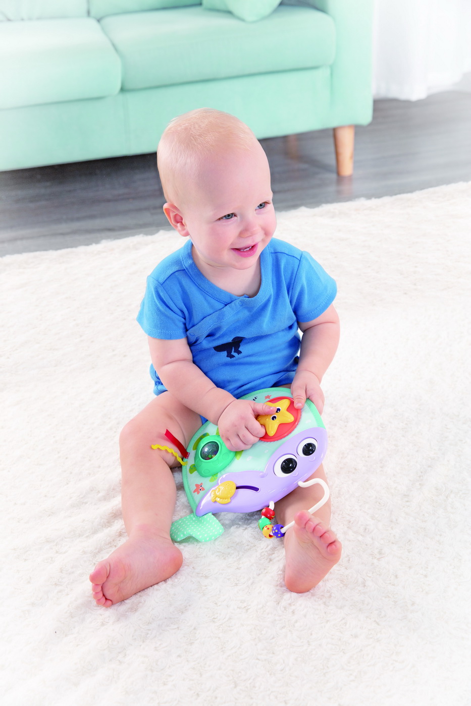 Centru de activități în formă de balenă, cu funcții variate ce încurajează mișcarea, gândirea și dezvoltarea senzorială. Ideal pentru copii de la 6 luni, stimulează coordonarea mână-ochi și motricitatea fină.