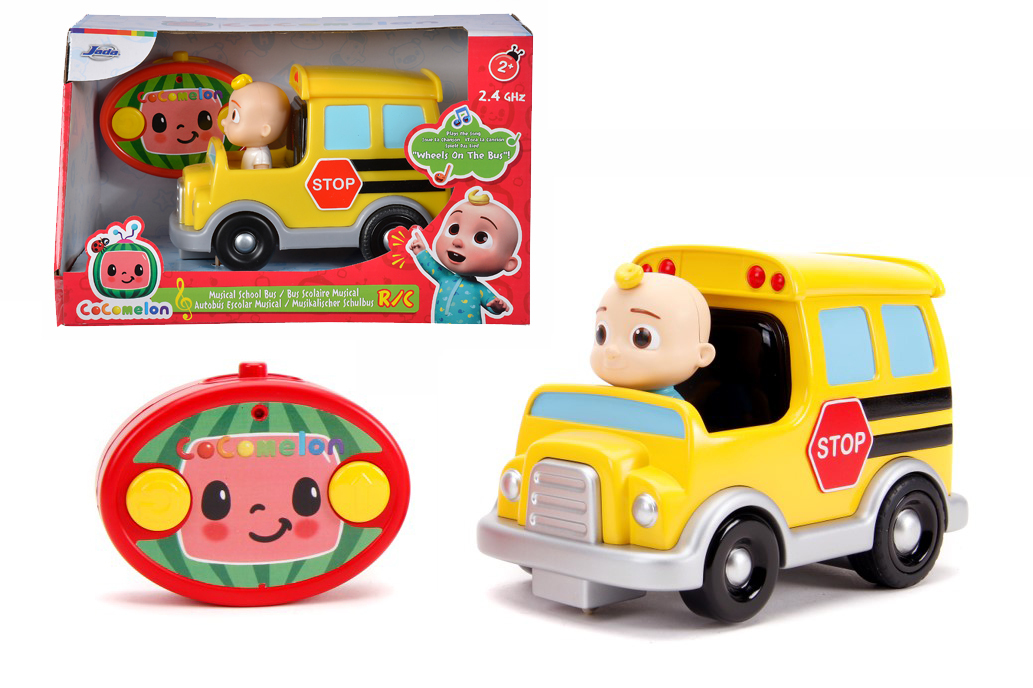 Autobuz scolar cu radio comanda si sunete Cocomelon, 1 canal de transmisie, frecventa 2.4 GHz, cu 2 directii de deplasare inainte si inapoi curbat, lungime 18 cm. Telecomanda simpla cu doua butoane este prietenoasa pentru mainile mici. Culorile stralucitoare si indraznete fac ca autobuzul sa poata circula prin tot orasul. Cantati in timp ce acest vehicul canta popularul cantec &bdquoWheels on the Bus&rdquo.