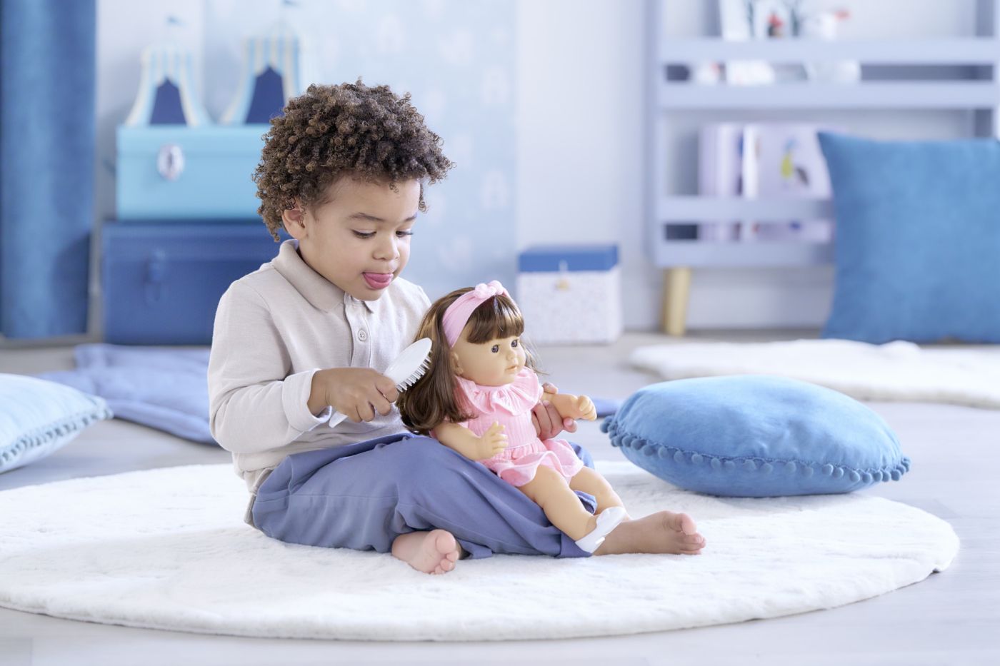 Julie este o papusa bebelus Corolle mare, pentru joaca si pentru a se comporta ca adultii. Masoara 36 cm, o dimensiune perfect potrivita bratelor mici ale unui copil pentru a fi alintat, ingrijit si pentru a reproduce actiunile care fac din maturizare o realitate. O papusa bebelus mare, cu pielea alba fata, bratele si picioarele, cu un parfum delicat de vanilie, sunt fabricate din vinil moale la atingere. Corpul ei este flexibil pentru o miscare usoara si poate sta in sezut. Degetul mare poate fi tinut in gura. Cu ochii ei albastri somnorosi, doarme cand sta intinsa pe spate. Este imbracata intr-o frumoasa salopeta roz si o camasa alba cu maneci lungi, cu model si guler Peter Pan. Pentru a-si completa tinuta, Julie poarta o bentita asortata si o pereche de balerini albi. Julie are o colectie completa de haine si accesorii Mon Grand Poupon Corolle pentru a imita actiuni de zi cu zi si a inventa scenarii de jocuri multiple si variate. Potrivita pentru varste de la 2 ani in sus.