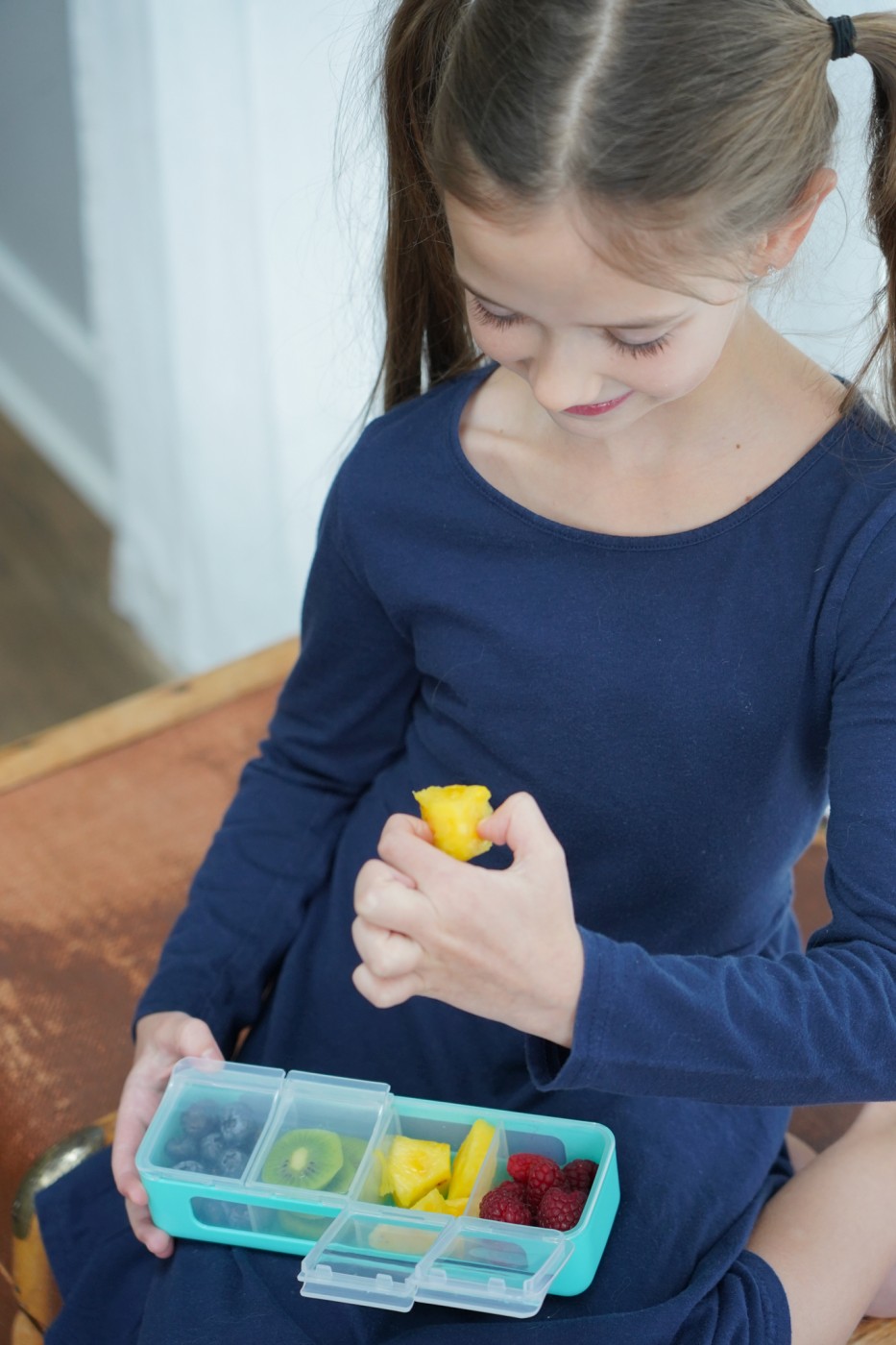 4 compartimente individuale, perfecte pentru a separa fructe, biscuiți, nuci sau alte gustări.
