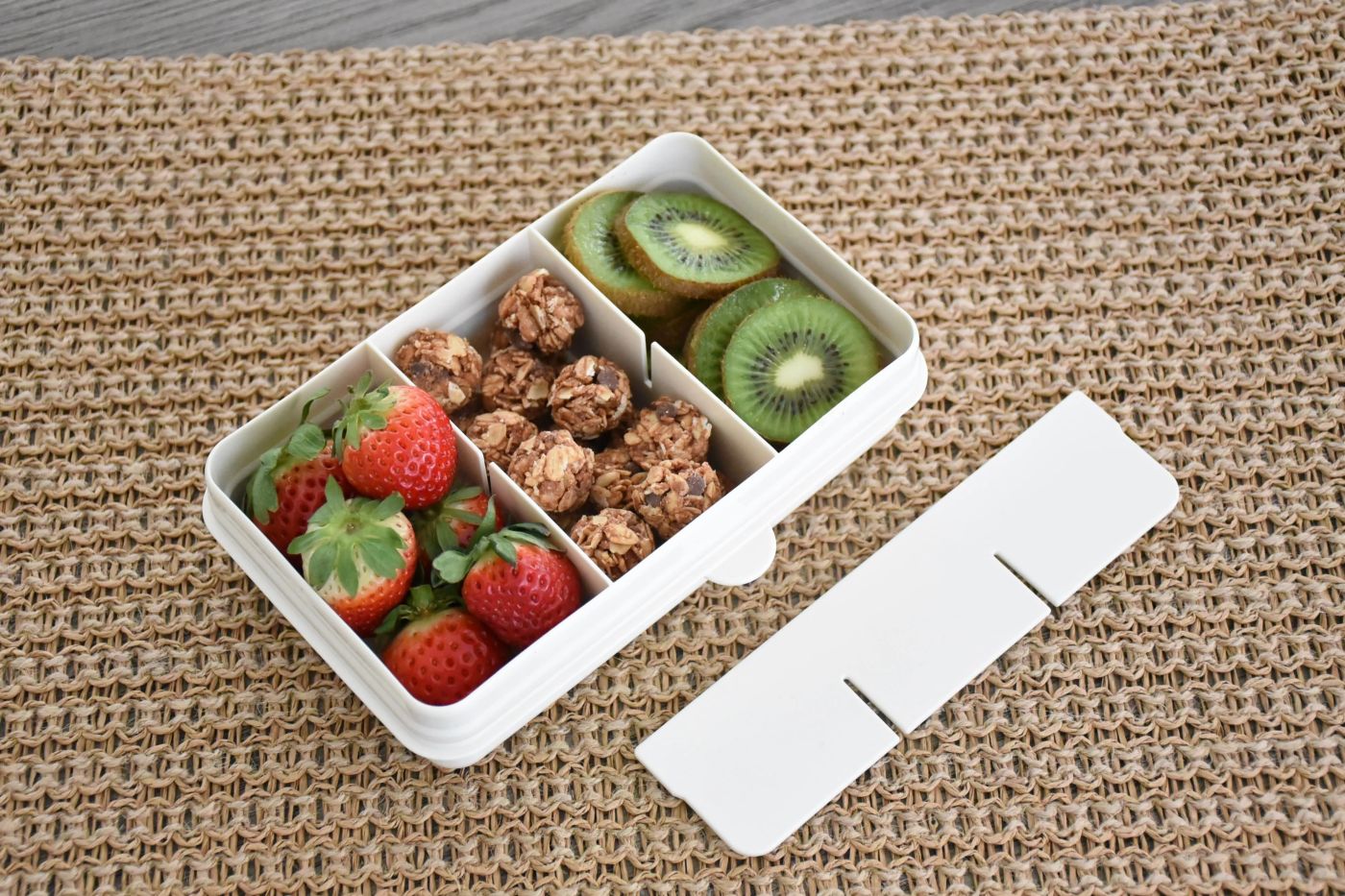 Conceputa special pentru copii, cutia de gustari pastreaza continutul organizat si ușor accesibil. Compartimentele separate previn amestecarea sau zdrobirea gustarilor, iar divizorul detasabil permite ajustarea spatiului pentru gustari mici sau mai voluminoase.