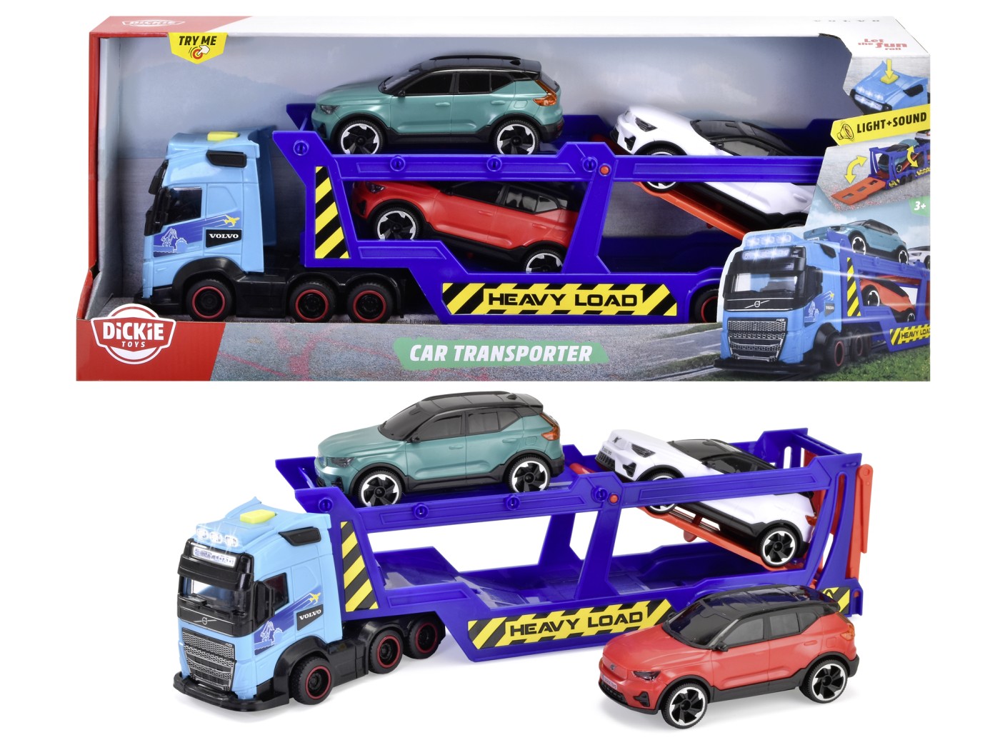 Setul Dickie Transportor Volvo de 40 cm este perfect pentru copiii care adoră camioanele, sunetele realiste și aventurile pe patru roți. Cu un design autentic inspirat de modelul Volvo FH16, acest camion de jucărie este gata să transporte 3 mașinuțe XC40 Recharge către noi destinații pline de imaginație.