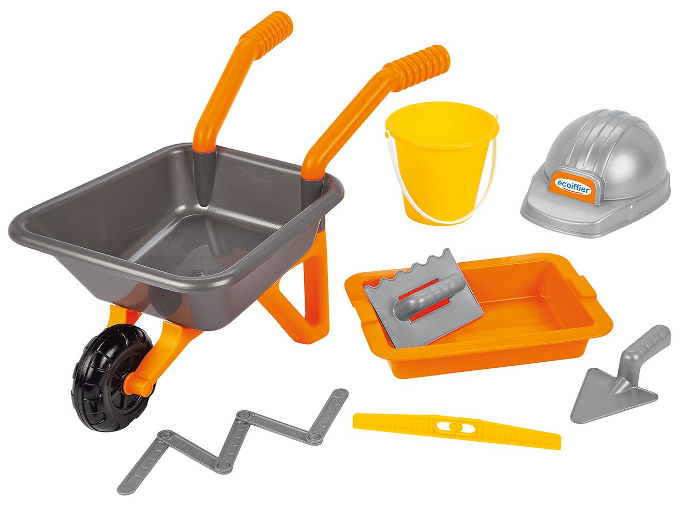 Cu setul de santier Ecoiffe, nisipul sau plaja de vacanta se transforma intr-un santier major intr-o clipa. Ore de distractie sunt garantate, pentru ca intotdeauna exista ceva de facut pe santier! Cu mistria, nisipul netezitor, ruleta, nivela si tava cu nisip, copiii pot sapa si se pot juca dupa pofta in nisip sau pe terenul de joaca si pot folosi roaba pentru a aduce mai multe materiale. Acum trebuie doar sa va puneti casca de constructor asa de distractiv este sa construiti! Toate piesele sunt usor de prins si nu au muchii ascutite - ideale pentru manutele mici. Varsta recomandata pentru copii de la 18 luni.