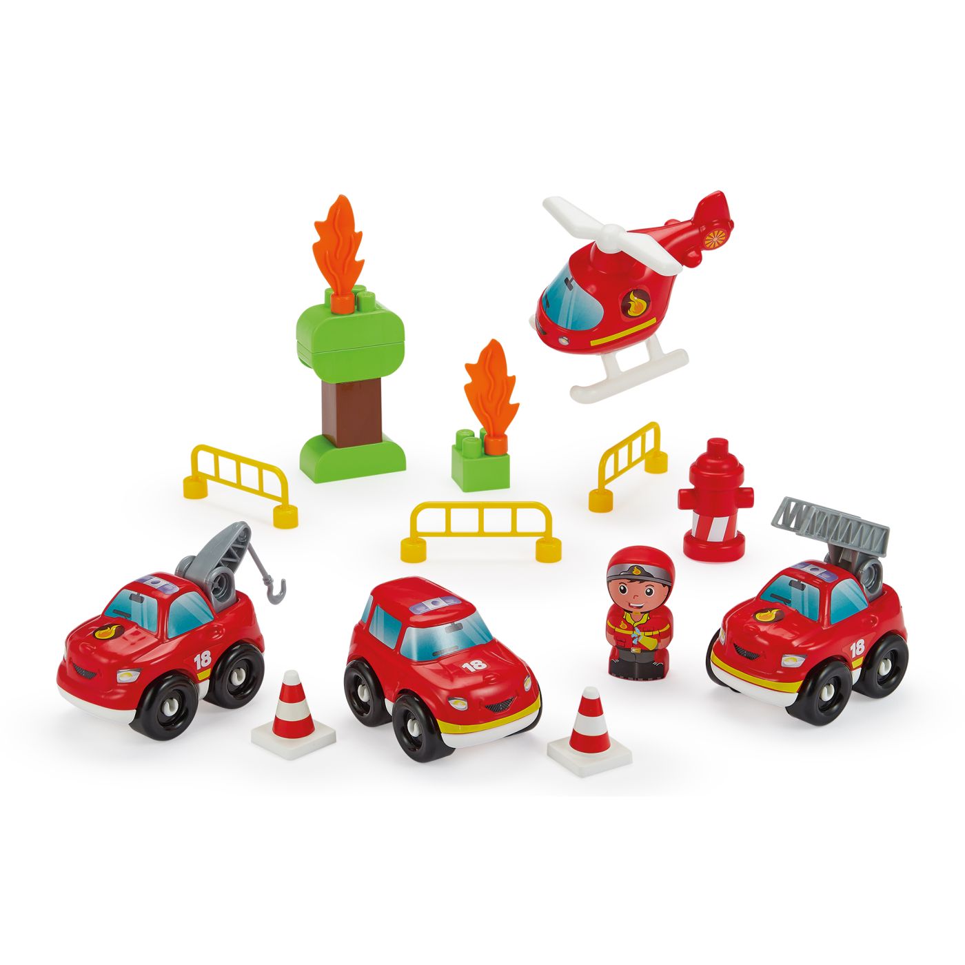 Valiza De Pompier care include 3 masini de pompieri, 1 elicopter, 1 personaj si diverse accesorii. Contine 43 de piese in total. Potrivit pentru varste de la 18 luni in sus. Setul de joaca pentru copii este conceput pentru activitati de rol care imita situatii din viata reala si stimuleaza imaginatia. Include mai multe accesorii tematice care permit copilului sa creeze propriile scenarii de joaca, dezvoltand creativitatea, coordonarea si abilitatile sociale. Piesele sunt realizate din materiale rezistente si sigure, potrivite pentru utilizare frecventa, iar dimensiunile sunt adaptate pentru manipularea utilizarii catre copii. Designul colorat si atractiv contribuie la mentinerea interesului si la implicarea activa in joc.