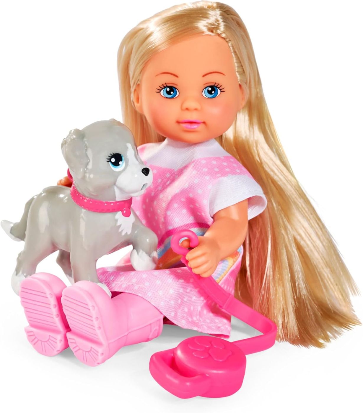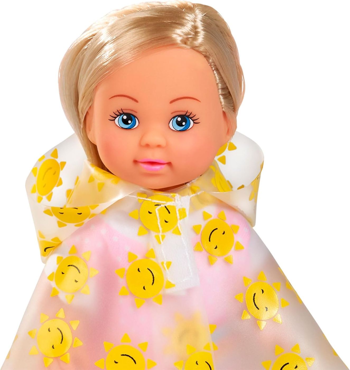 Setul Plimbare In Ploaie cu Papusa la moda Evi Love este dulce surioara a lui Steffi Love. La fel ca Steffi, are un par lung si superb, nenumarate hobby-uri, iubeste animalele si este perfect imbracata pentru fiecare ocazie. Fetele si baietii isi pot stiliza si imbraca papusa conform celor mai recente tendinte in moda. Evi in pelerina de ploaie - Evi isi scoate cainele la plimbare prin ploaie. Este imbracata in cea mai buna tinuta a ei de ploaie. In pelerina ei de ploaie cu gluga si cizmele roz de cauciuc, infrunta vremea rece si umeda. Pe langa papusa Evi de 12 cm, setul include si un catelus dragut cu lesa. Micuta prietena patruped este cea mai buna prietena a lui Evi. Potrivita pentru copiii cu varsta de 3 ani si peste.