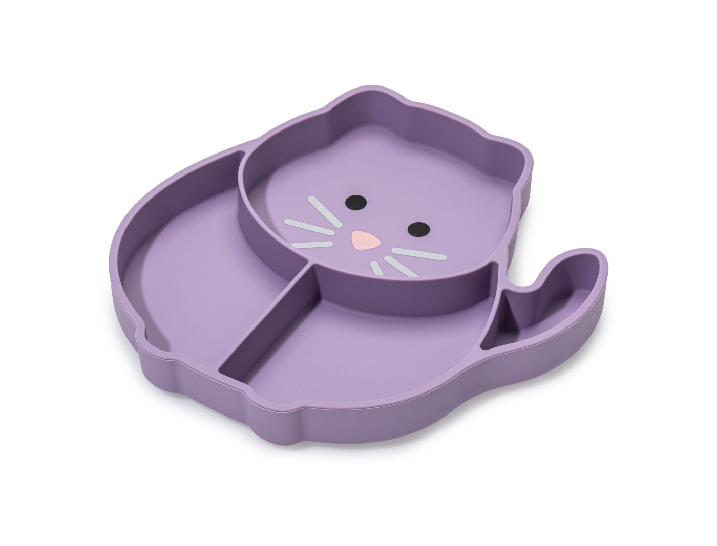 Farfurie compartimentată din silicon cu ventuză, Melii, model pisică