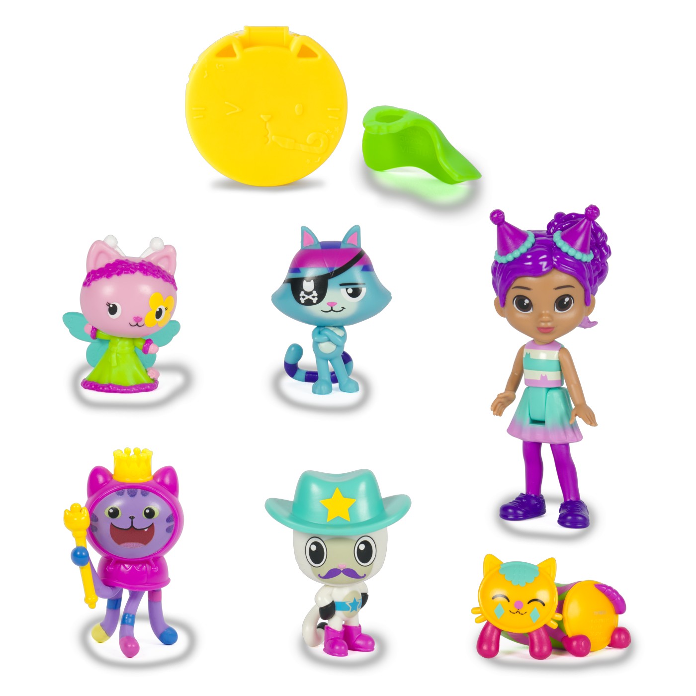 Paseste in lumea magica a casei de papusi a lui Gabby cu setul cadou Celebration Figure. Acest set exclusivist de personaje o prezinta pe Gabby si pisicutele ei preferate, precum Panda-Mat, DJ Mat, Matisor, Per-Mat si Miau-Zana. Ulterior, deschide cutia cu propria ta casa de papusi pentru a descoperi jucaria surpriza, o pelerina incantatoare. Pentru o surpriza suplimentara, scaneaza codul QR din pachetul casei de papusi pentru a debloca o recompensa speciala in aplicatia gratuita Gabby's Dollhouse, disponibila pe iOS si Android. Jucariile casa de papusi a lui Gabby pentru fete si baieti sunt cadouri minunate pentru copiii care sunt fani ai serialului de succes de pe Netflix si carora le place sa construiasca lumi in case de papusi. Fa memorabila intrarea lor in jocul din casa de papusi, cu o lume de personaje de jucarie adorabile, accesorii pentru case de papusi si mobilier pentru case de papusi pe care sa le colectionati si sa le personalizati. Construieste-ti lumea cu seturi esentiale pentru casa, cum ar fi o bucatarie de jucarie sau o camera de muzica, si o multime de articole de colectie, cum ar fi un minunat vas de croaziera de jucarie, o piscina cu tema sirenelor si noul set de joaca Party Room mansarda casei de papusi cu un parc de skateboarding in interior si balcoane super dragute, cu mini jucarii fidget care ofera o super-experienta de joaca senzoriala si functioneaza perfect cu ambele versiuni ale casei de papusi.