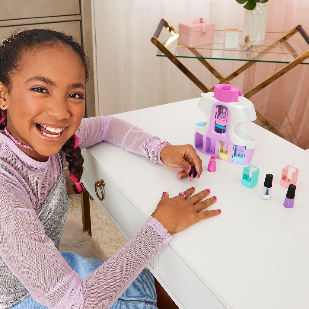 Noul salon de manichiura GoGlam! Toate intr-un singur loc! stampilati-va si unghiile de la picioare! Uscator inclus! Modele si culori noi! Pur si simplu asezati cartusul cu tema la alegere in masina si rotiti roata pentru a va selecta designul, plasati un deget acoperit cu oja speciala Go Glam in spatiul special si apoi apasati masina pentru a aplica designul pe deget si relizezi o manichiura perfecta. Proectie pentru oja furnizat pentru a finaliza manichiura / pedichiura si pentru a da un efect stralucitor si plin de farmec, rezultatul este incredibil! Cu Salonul de unghii Go Glam U-Nique, este imposibil sa nu iti placa manichiura relizata. Masina contine, de asemenea, un uscator de unghii si un compartiment pentru depozitarea lacurilor.