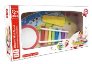 🎶 Ai un mic pasionat de sunete în casă? Atunci Hape jucărie muzicală este exact ce-i trebuie! Acest mini band set oferă tot ce-i trebuie unui copil curios să exploreze lumea instrumentelor: tambur, xilofon, tobă laterală, clopoței și bețe pentru percuție – toate într-un design compact și prietenos.