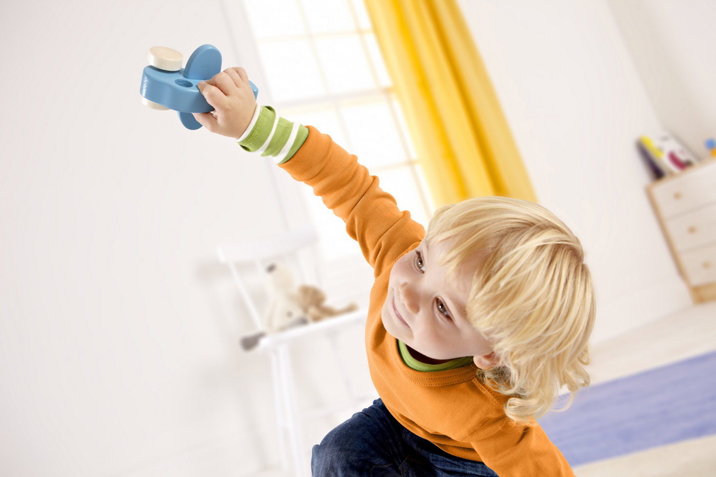Cerul este limita când decolează acest avion adorabil acționat manual! Indicați avioane reale pe cer, încercați să ghiciți unde zboară, apoi creați-vă propriul zbor imaginar în sufragerie. Aripile se mișcă în sus și în jos cu balamale ușoare și elastice, iar designul este perfect adaptat pentru a fi ținut confortabil de mânuțele celor mici.