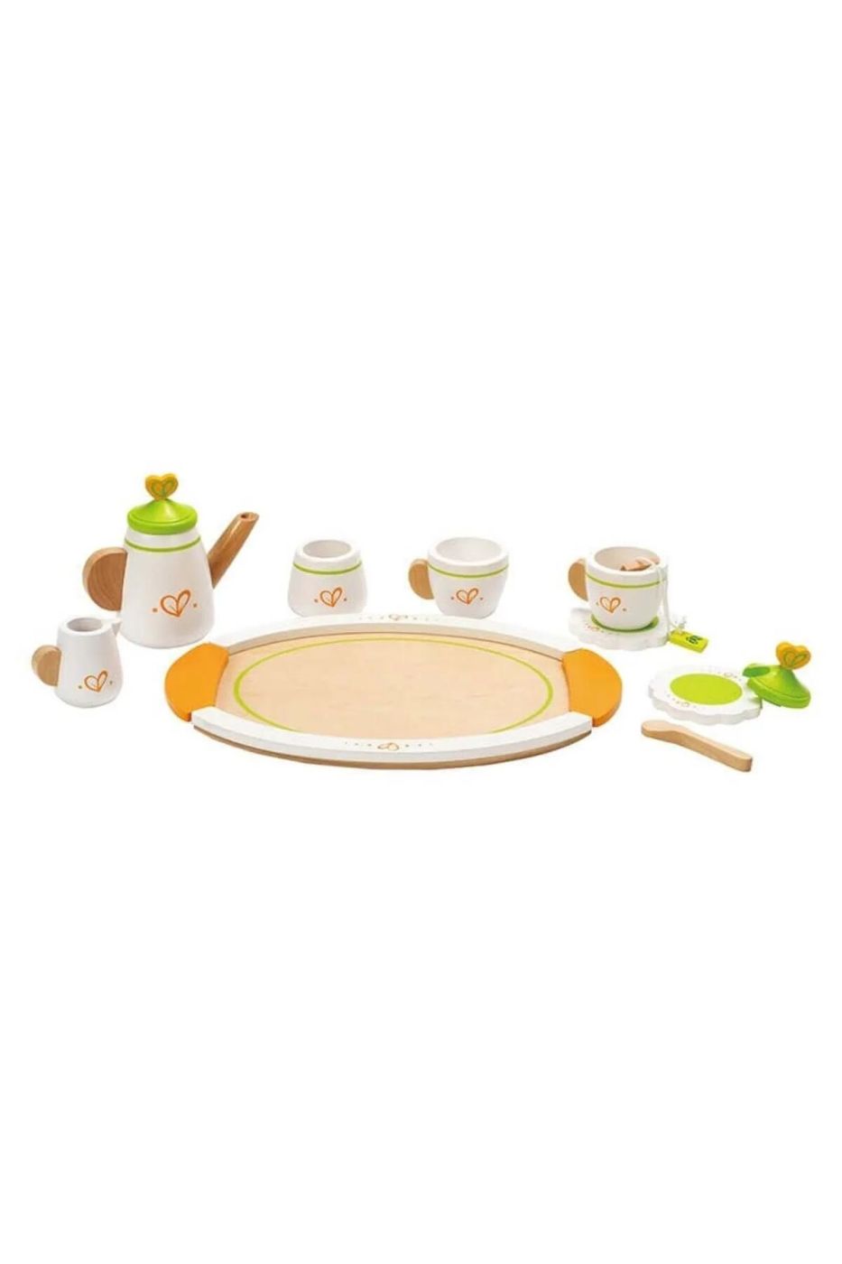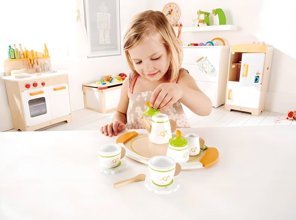 Setul de ceai Hape este perfect pentru povești savurate în doi! Conține tot ce trebuie pentru o joacă elegantă: ceainic cu capac, 2 cești, 2 farfurioare, 1 tavă, 2 lingurițe și chiar și pliculețe de ceai din lemn 🍵💬.
