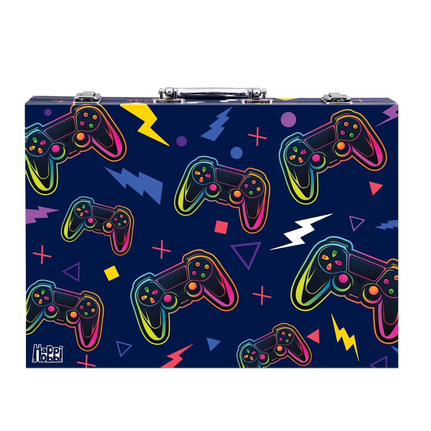 Indiferent cate culori ai, niciodata nu sunt suficiente pentru creatiile tale artistice! Cu trusa HappiHobbi Deluxe Art Case Joc Video, vei gasi 100 de accesorii pentru a desena modelele tale preferate si a explora diferite tehnici artistice. Toate sunt impachetate cu grija intr-o trusa practica, cu maner, astfel incat sa poti lua creativitatea cu tine oriunde te-ai duce!