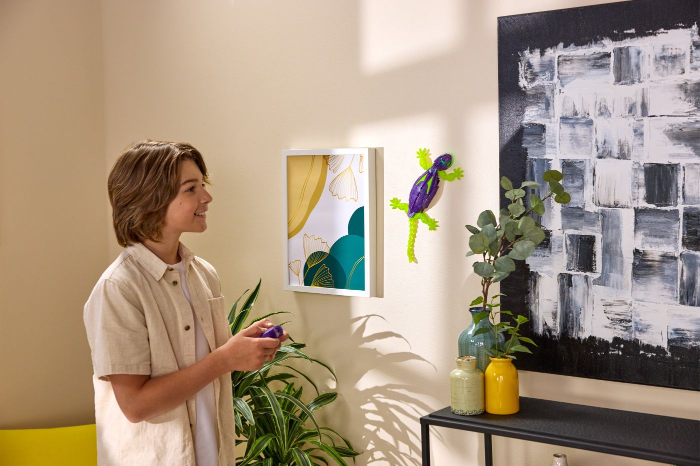 Descopera fascinanta soparla robotica Hexbots cataratoare Gecko mov, o jucarie spectaculoasa care poate urca pe pereti si straluceste in intuneric! Cu un design futurist in culori vibrante violet si verde fosforescent, Gecko este usor de controlat cu telecomanda inclusa si aduce ore intregi de distractie pentru copii. Tehnologia sa inovatoare ii permite sa se catere pe suprafete netede, creand un efect uimitor de levitatie. Perfecta pentru micii exploratori curiosi de stiinta si miscare, aceasta soparla fosforescenta combina actiunea, tehnologia si imaginatia intr-un mod captivant. Recomandata copiilor de la 4 ani in sus.