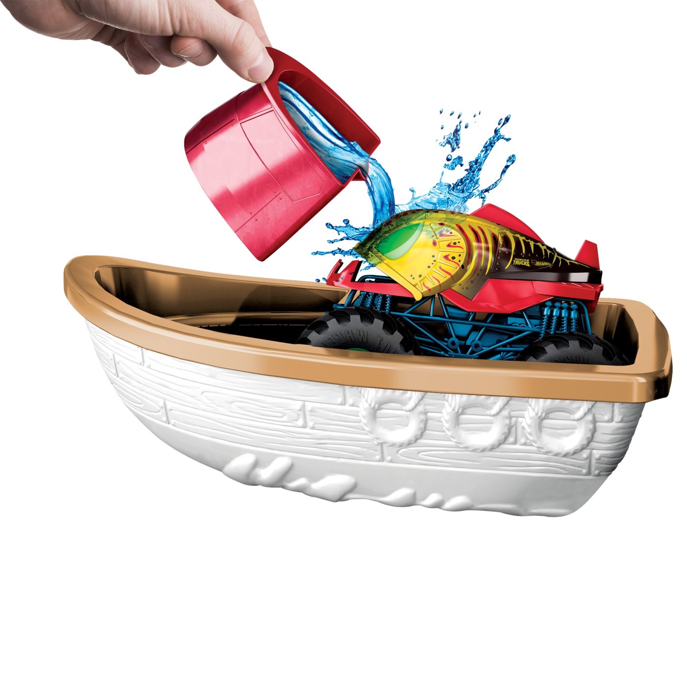 🚚💥 Hot Wheels Monster Trucks Color Shifters – Atacul Crocodilului aduce în sufragerie o explozie de aventură, culoare și emoție! Camionul inclus din gama Color Shifters „Piran-ahhhh” își schimbă aspectul într-o clipă – doar stropește-l cu apă caldă sau rece și urmărește magia transformării! 🔁🌈