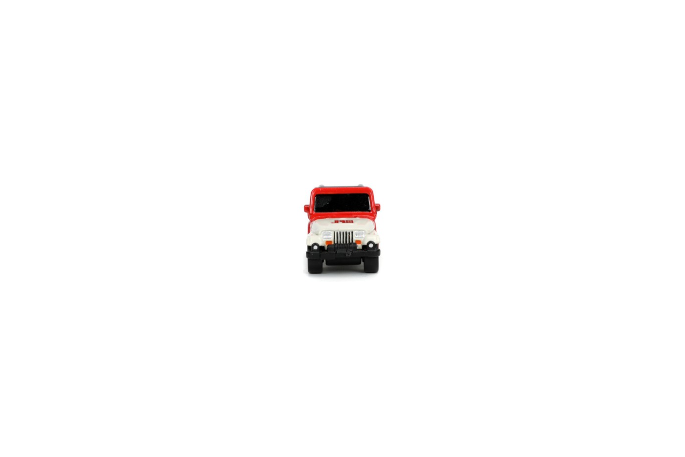 Mini aventură în lumea dinozaurilor! Setul conține 3 vehicule emblematice Jurassic Park din metal – Ford Explorer, Jeep Wrangler și un elicopter A109, fiecare de 4 cm lungime.