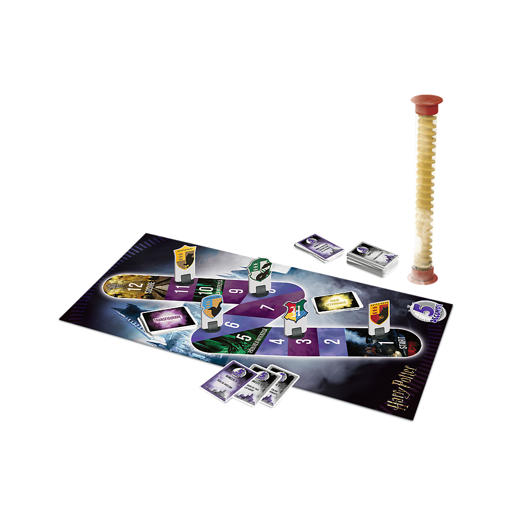 Ce poți face în doar 5 secunde? Răspunde rapid la întrebări precum „Numește 3 vrăji”, „Spune 3 animale magice” sau „Cine sunt cei 3 frați Peverell”! Cronometrul special cu bile colorate îți va pune presiune pe gândire și pe zâmbet 😂⏳
