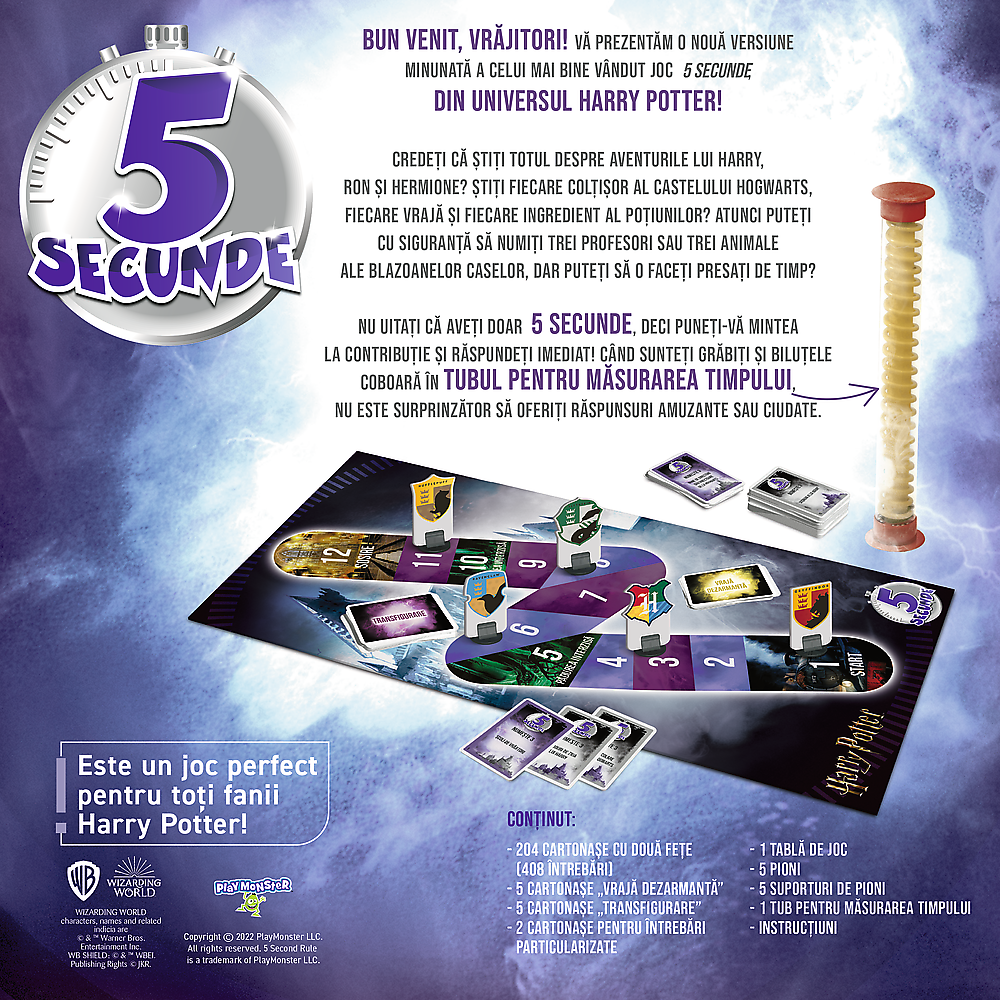 Poți răspunde corect în doar 5 secunde... în lumea vrăjitorilor? Un joc de societate rapid, imprevizibil și magic, inspirat din universul Harry Potter! ⚡⏱️