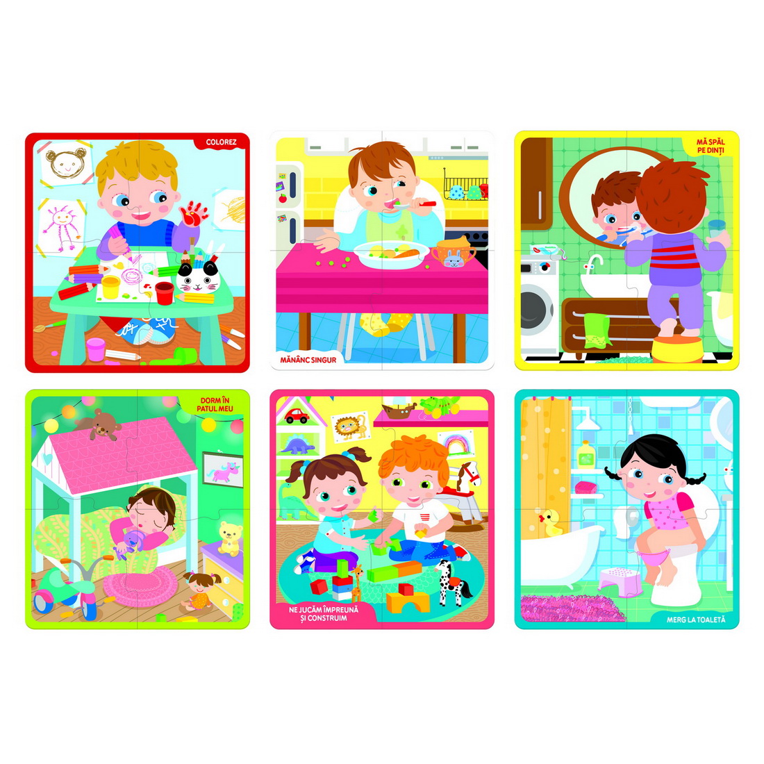 Intre 2 si 3 ani, copiii incep sa inteleaga notiunea de &bdquoEGO&rdquo ,incep sa-si descopere personalitatile si devin stapanii propriilor decizii. Acesta este momentul in care este extrem de important sa le sustineti dorinta de a fi independenti si sa incercati sa-i ajutati sa faca singuri anumite activitati de zi cu zi. Jocul descrie cateva activitati de baza, pe care copiii trebuie sa inceapa sa invete sa le faca singuri, in timp ce isi dezvolta simultan observatia, abilitatile motorii, memoria si logica.