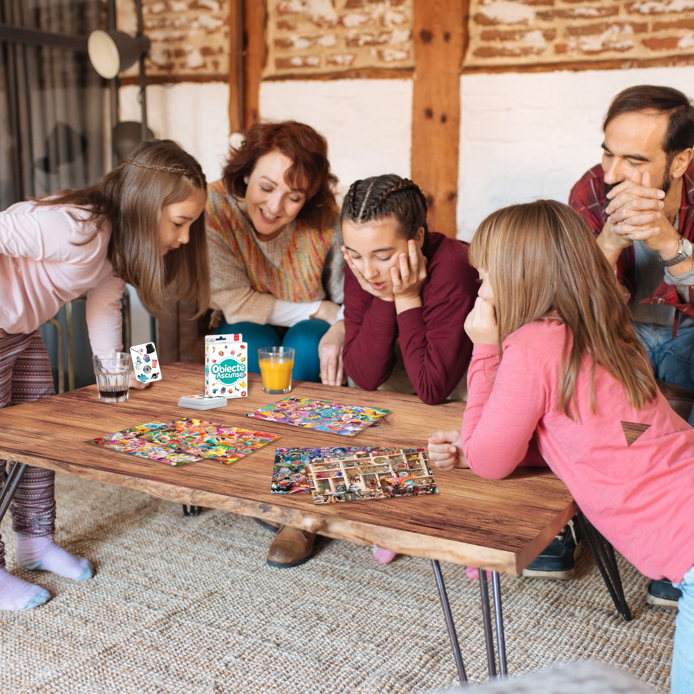 Jocul include 30 de carti cu doua fete, 4 carti de masa cu doua fete, Brosura de instructiuni.