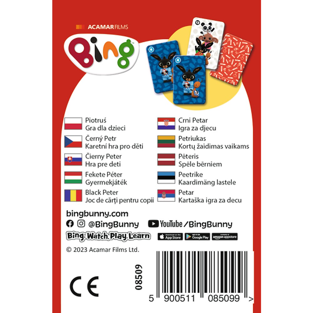 Old Maid Bing, Pacalici, este un joc de carti cunoscut de toti copiii. Regulile sunt simple acesta este un joc rapid, interesant, care se bucura de mult succes si popularitate. Adaugati la aceasta faptul ca cartile vin cu imagini ale celor mai populare personaje din basme, desene animate, benzi desenate si filme si veti obtine un produs pe care toti copiii adora sa-l joace. Jocul se joaca intre 2 si 4-5 jucatori a caror sarcina este sa selecteze perechi de carti si sa scape de mainile lor de carti cat mai curand posibil. Pachetul are Black Peter, care este o carte nepereche. Cel care ramane cu cartea la sfarsitul jocului pierde jocul. Jocul ofera o doza mare de ras si te ajuta sa antrenezi perceptia.