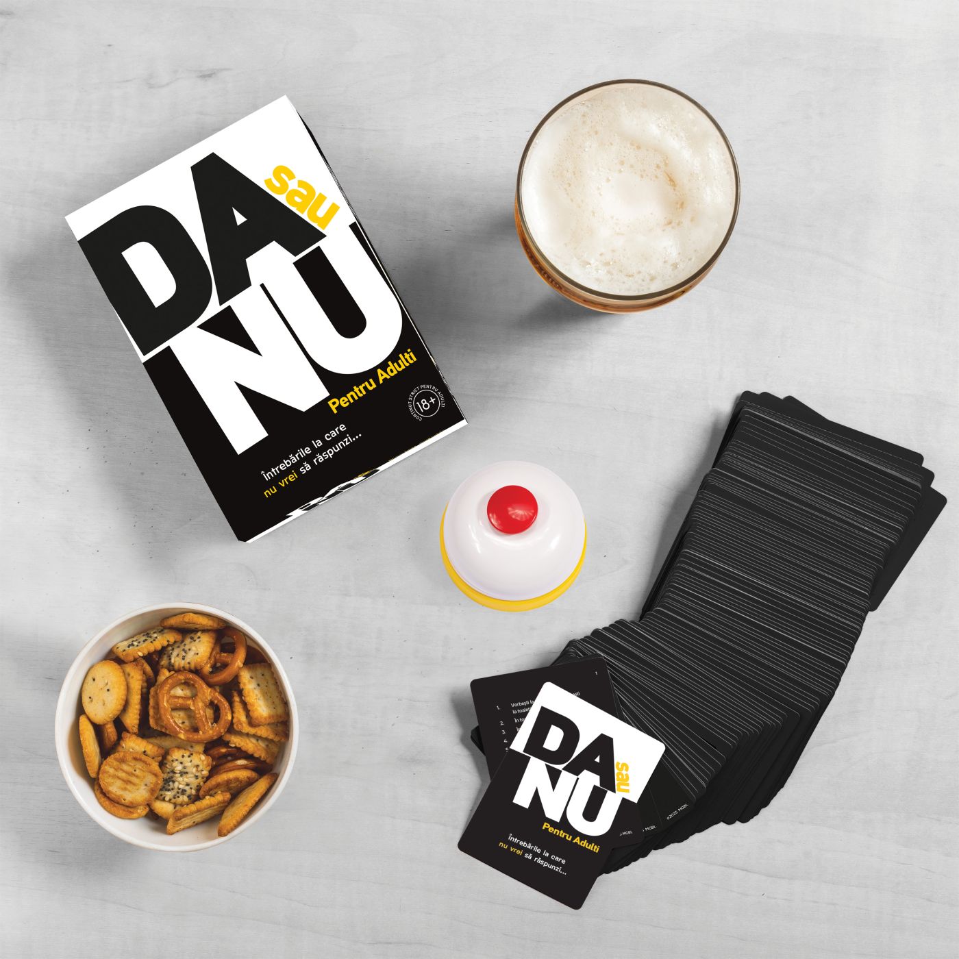 „Da sau Nu pentru Adulți” este jocul social ideal pentru seri în care distracția, sinceritatea și surprizele sunt pe primul loc. Simplu, direct și foarte amuzant, acest joc te provoacă să răspunzi spontan la întrebări incomode, neașteptate sau picante — iar uneori e mai greu decât pare!