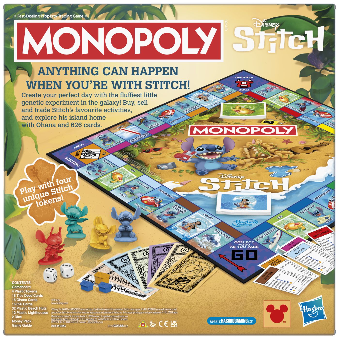 Monopoly Disney Stitch este o editie speciala a clasicului joc de societate Monopoly, inspirata de universul amuzant al personajului Stitch. Jucatorii cumpara, vand si schimba proprietati tematice, incearca sa isi construiasca strategia perfecta si sa devina cel mai bogat jucator de pe tabla. Grafica colorata si ilustratiile cu Stitch aduc un plus de distractie jocului clasic, transformand fiecare partida intr-o aventura plina de umor. Este un joc ideal pentru serile petrecute in familie sau cu prietenii, care incurajeaza gandirea strategica, spiritul competitiv si interactiunea intre jucatori. Potrivit pentru copii si adulti care iubesc jocurile de societate si personajele Disney. Jocul este in Limba Engleza.