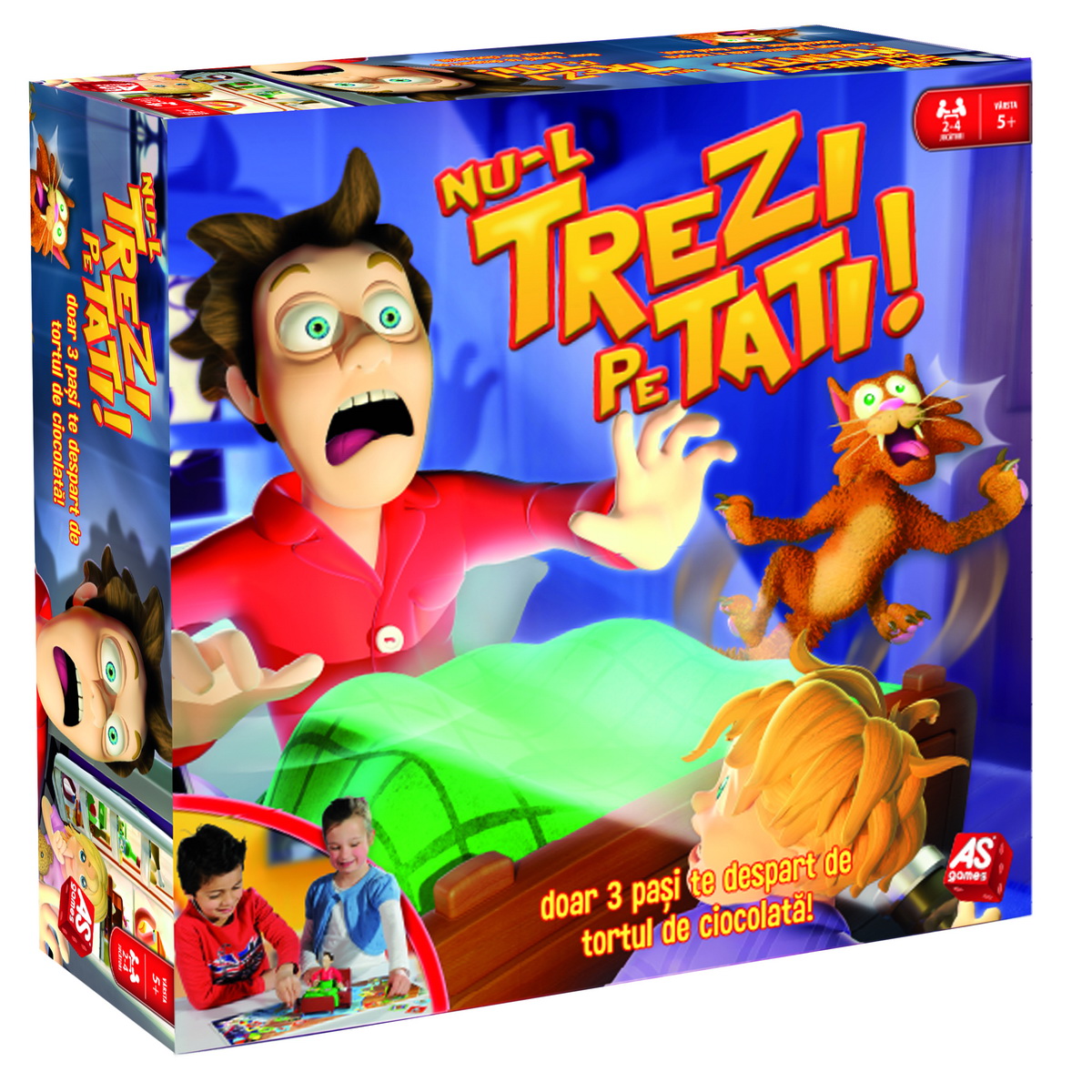 Este seara tarziu si esti gata de somn, cand, dintr-o data iti amintesti de tortul de ciocolata din frigider... si nu-i poti rezista! Trebuie sa ajungi la frigider, traversand casa in intregime pe varful degetelor... ferindu-te de obstacolele care produc zgomote si-l pot trezi pe tati! Doar 3 pasi te despart de tortul de ciocolata! Invarte roata pentru a incepe, insa mergi cu atentie pe varful degetelor. Pazea, vei avea multe obstacole. Un pas gresit il poate trezi pe tati si va fi foarte suparat. Jocul contine tataelectronic tabla de joc16 cartonase 4 pioni 1 sageata 1 pagina cu stickere ghid de instructiuni. Numar jucatori 2-4.
