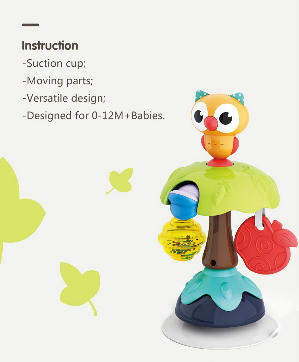 Această simpatică bufniță cu ventuză este aliatul perfect pentru mesele liniștite și momentele de explorare ale celor mici. Se fixează ferm pe masa de joacă, scaunul copilului sau podea, oferind o joacă sigură și captivantă fără să alunece sau să cadă.