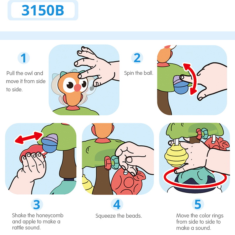 🎨 Designul vesel în formă de bufniță și culorile contrastante atrag imediat atenția, iar sunetele și mișcările ușoare transformă fiecare atingere într-o mică descoperire!