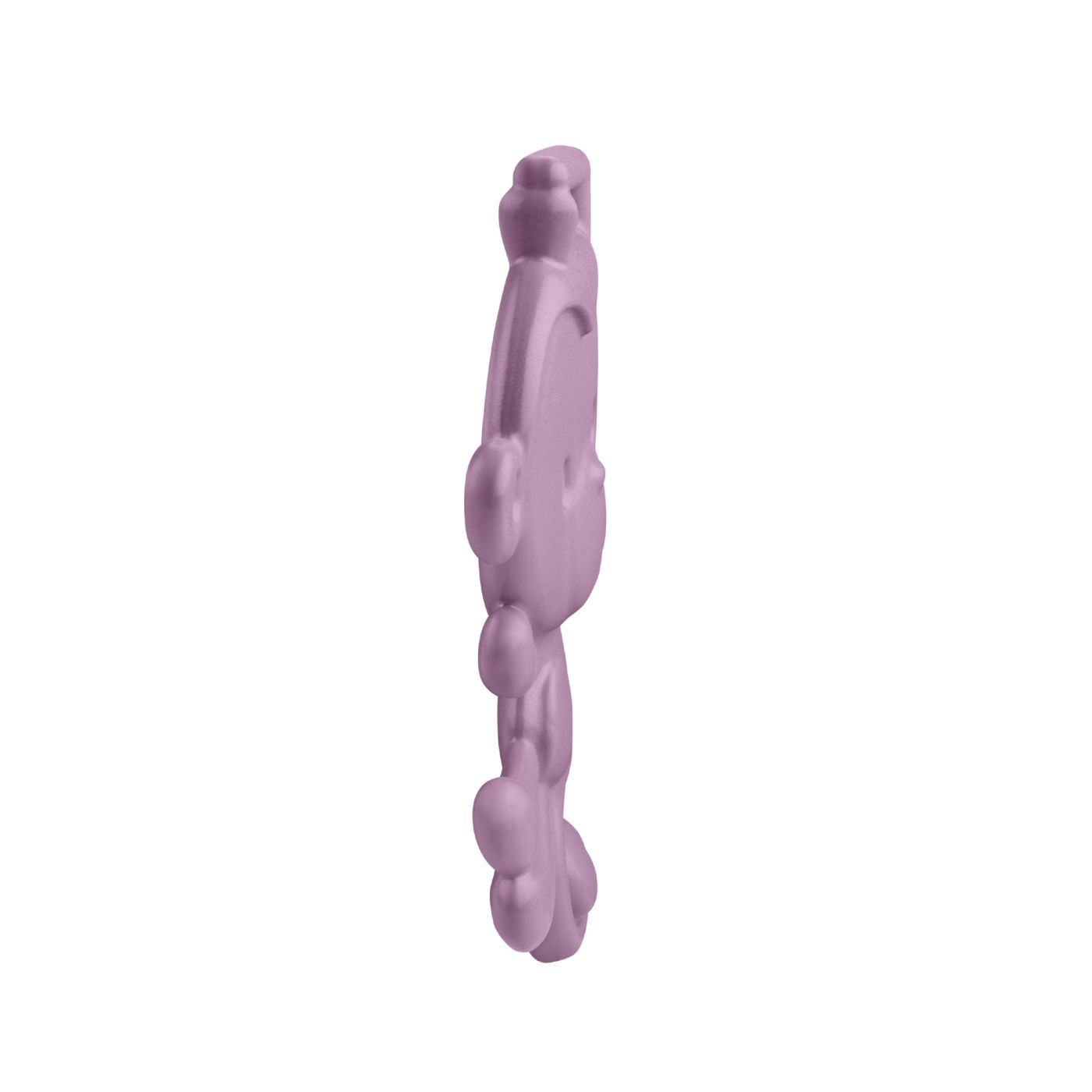 Jucăria de dentiție Măimuțică Mov este moale, sigură și ușor de prins, ideală pentru calmarea gingiilor sensibile ale bebelușilor. Forma prietenoasă și inelele flexibile stimulează explorarea tactilă și dezvoltarea precoce a abilităților motorii fine.