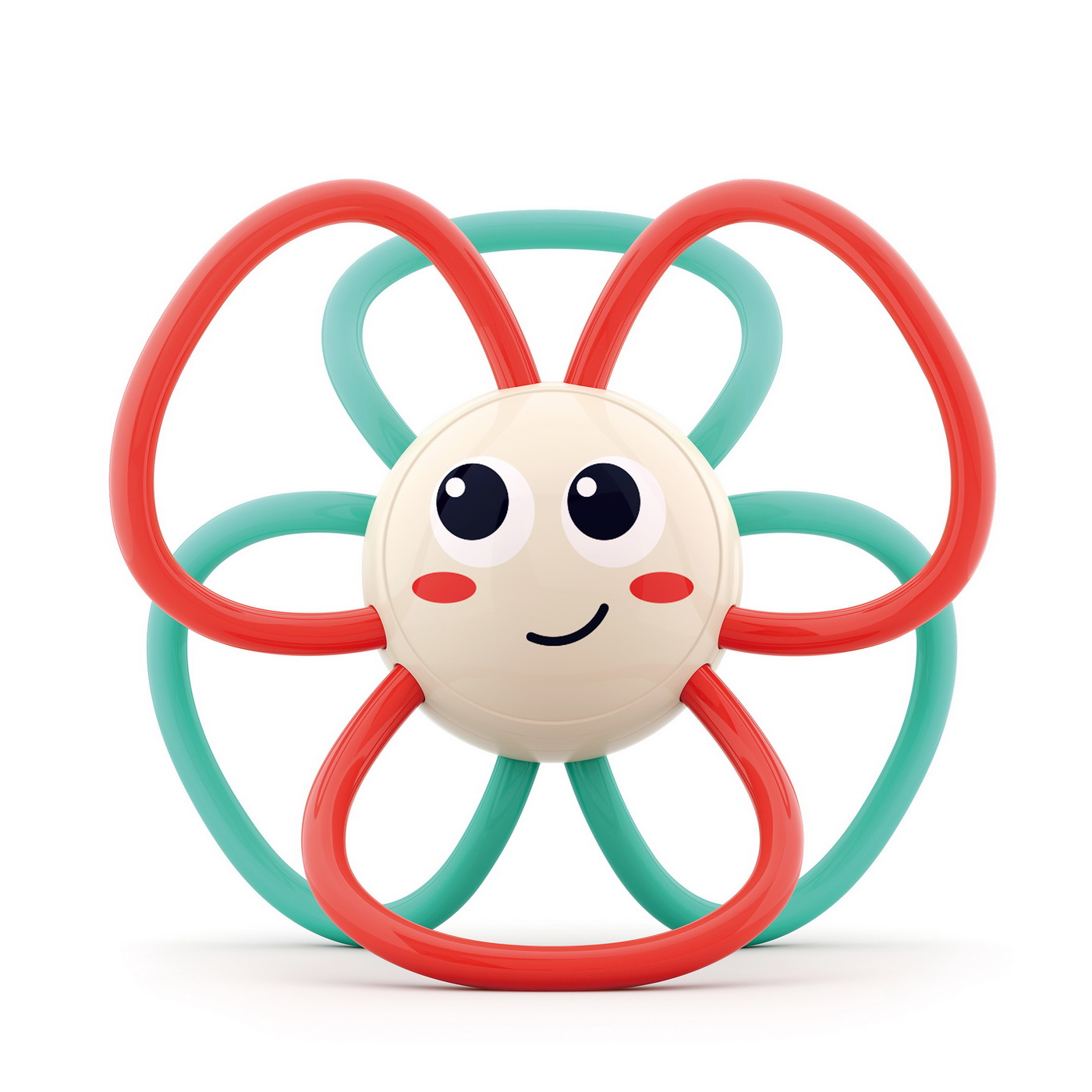 Colorată, veselă și mereu zornăitoare – floarea-soarelui aduce zâmbete și calmează gingiile! Perfectă pentru bebelușii de la 3 luni, sigură, fără BPA, și ușor de prins în mânuțe 🌻🔔