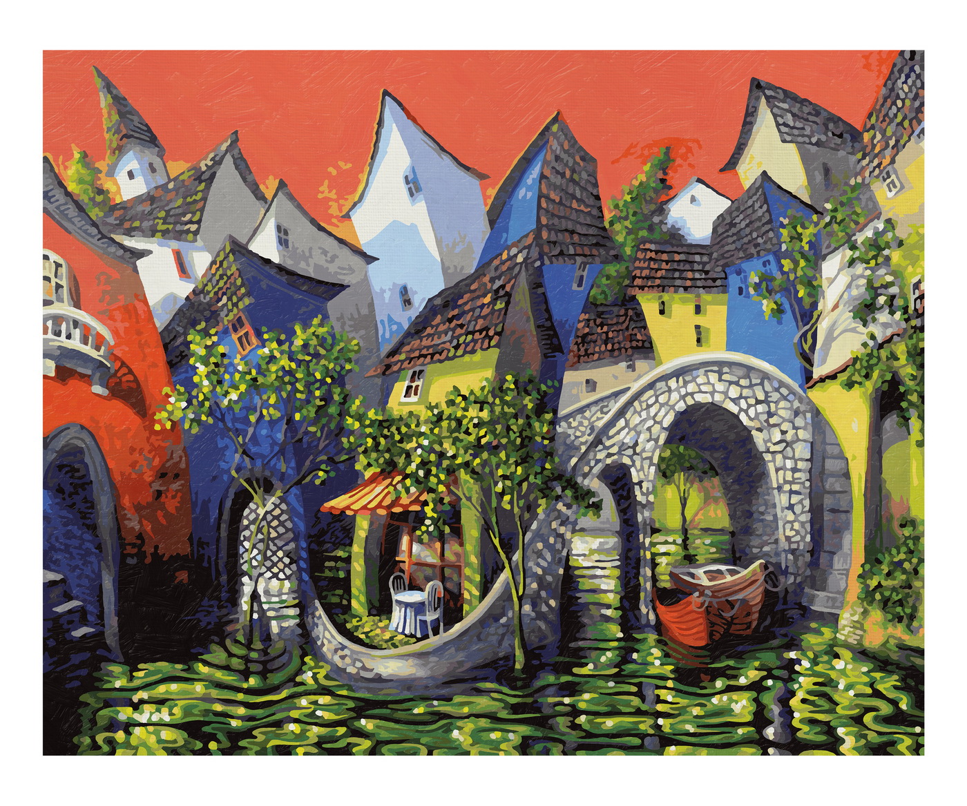 Acest set de pictura pe numere are o dimensiune 40x50 cm si este din carton cu textura din panza, cu desen conturat in numere. Culorile si pensula sunt incluse. Culorile acrilice des utilizate in realizarea picturilor artistice ce nu necesita amestecare cu apa, culorile se gasesc in tuburi de plastic ce au atasate numere corespunzatoare conturului desenat pe panza, tabloul se poate agata ulterior pe perete. Fiecare zona este marcata cu numere ce corespund unei anumite culori. Completati fiecare zona si in cele din urma imaginea va aparea ca un tablou finit. Picturi pe Numere este primul pas perfect pentru incepatori, pentru ca si acestia sa se bucure de pictura. Pictura odata terminata se poate pune in rama. Ramele nu sunt incluse in set. Ele se pot achizitiona, optional si separat. Produsul este comercializat sub brandul german Schipper fiind fabricat la inalte standarde de calitate, in Germania.