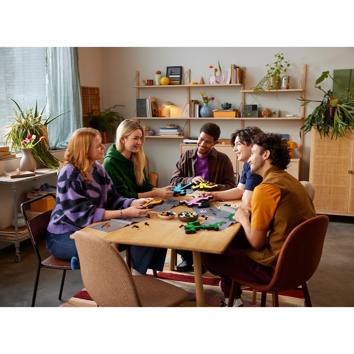 Creeaza o versiune din caramizi a uneia dintre cele mai cunoscute teme din lumea artei cu setul de constructie LEGO Art Keith Haring Figurine care danseaza (31216). Inspirata de figurinele dansatoare ale legendarului artist pop Keith Haring, aceasta uimitoare replica LEGO surprinde stralucitor liniile indraznete, culorile vibrante si impresia remarcabila de miscare si energie. Acest set de constructie pentru adulti ofera un proiect captivant in care asamblezi decoratiunea de interior din 1.773 de caramizi LEGO. Setul include 5 brosuri cu instructiuni de constructie, una pentru fiecare din cele cinci figurine, astfel incat sa te poti bucura de o experienta sociala in care creezi aceasta piesa pop art alaturi de prieteni sau de membrii familiei. Odata construita, ai 2 optiuni de etalare fie iti atarni pe un perete opera de arta LEGO Keith Haring fara rame, fie conectezi fiecare figurina la un suport si le expui cum doresti, cele 5 figurine fiind modele separate, astfel incat sa poti decide in ce ordine si cate vrei sa expui. Setul poate fi un cadou special si creativ pentru tine sau pentru orice iubitor de arta.