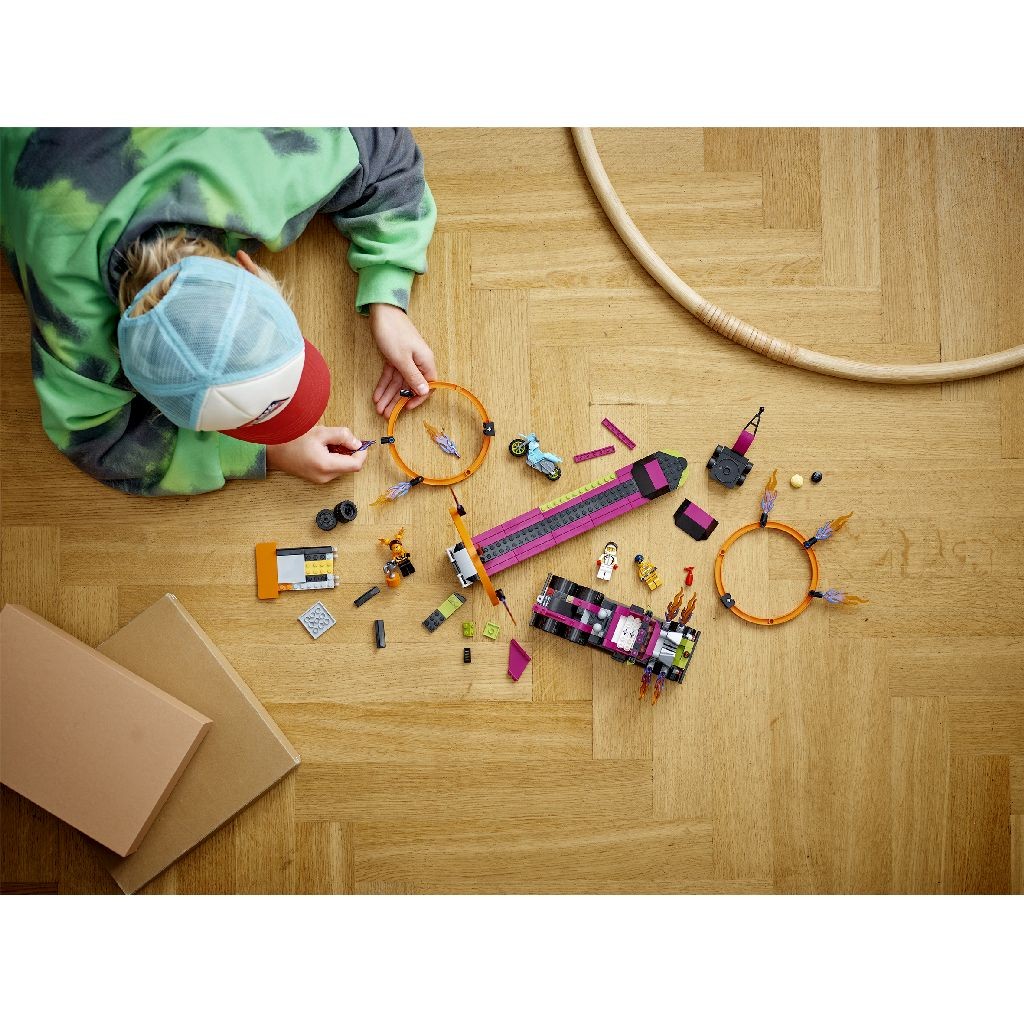 Acest set LEGO City Stuntz este ideal pentru copiii pasionați de mașini, motoare, acrobații și joacă de rol! Fie că e vorba de zi de naștere, Crăciun sau o zi plină de energie, cascadoriile LEGO sunt garantate!