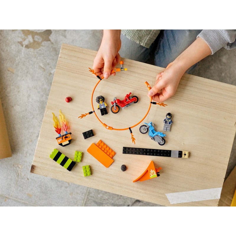 Baietii si fetele competitive vor adora acest set LEGO City Concursul de cascadorii (60299), care include 2 motociclete cu volanta pentru a executa wheelie-uri uimitoare si acrobatii la mare inaltime. Vor primi de asemenea si o rampa de lansare reconfigurabila si un traseu cu inel de foc. Mai adauga si minifigurinele incluse motociclistul si celebrul Duke DeTain din serialul LEGO City Adventures si esti gata de actiune!Acest set cu jucarii de constructie include instructiuni usoare de urmat precum si Instructions PLUS ca parte din aplicatia gratuita LEGO Building Instructions pentru smartphone si tableta. Acest ghid interactiv cu functii de zoom si rotire ajuta tinerii constructori LEGO sa devina Maestri constructori!Seturile LEGO City Stuntz pun copiii in mijlocul actiunii cu motociclete cu volanta, vehicule grozave, structuri autentice si personaje distractive care le vor inspira imaginatia. Seturile LEGO City Stuntz pot fi combinate intre ele pentru si mai multa actiune!Distractie maxima te asteapta cu acest set LEGO City Concursul de cascadorii (60299), care include 2 motociclete cu volanta si 2 minifigurine cu motociclisti, printre care Duke DeTain!Ce e in cutie? Un inel cu flacari, un turn cu inaltime ajustabila, flacari LEGO construite din piese, 2 motociclete cu volanta si 2 minifigurine.Activeaza motocicletele cu volanta si lanseaza-le de pe rampa pentru a zbura prin inelul de foc, apui lungeste saritura si ridica inelul pentru a mari dificultatea!Un cadou de neuitat pentru o zi de nastere, pentru sarbatori sau pur si simplu o ocazie speciala din viata unui fac LEGO cu varsta de minim 5 ani. Combina acest set de jucarii LEGO cu altele din seria LEGO City Stuntz pentru si mai multe concursuri pline de actiune si mai multe spectacole de cascadorii incredibile!Setul masoara peste 24 cm inaltime, 22 cm latime si 11 cm lungime.Nu are nevoie de baterii acest set functioneaza cu puterea imaginatiei si tehnologia cu volanta!Include instructiuni tiparite precum si Instructions PLUS un ghid interactiv de construit care face constructia LEGO o adevarata joaca de copil ca parte a aplicatiei gratuite LEGO Building Instructions.Seturile LEGO City Stuntz pun copiii in miezul actiunii cu masini si motociclete uimitoare si personaje distractive care vor inspira nenumarate ore de joaca!