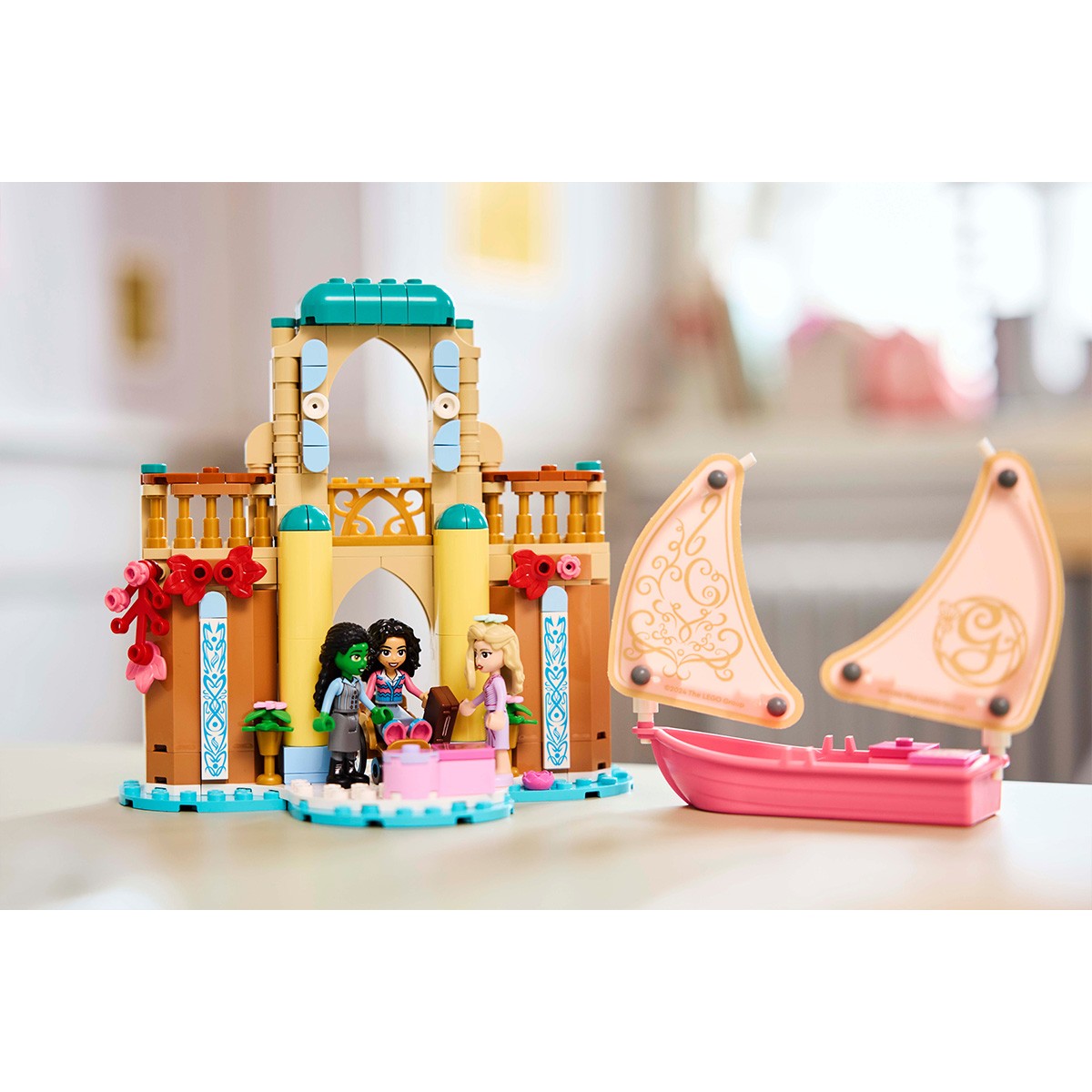 Setul începe cu o barcă vesel colorată, care o aduce pe Glinda la Universitatea Shiz – locul unde încep relațiile și poveștile fantastice din lumea Wicked. Alături de ea se află Elphaba și Nessarose, pregătite pentru cursuri, distracție și joacă de rol!