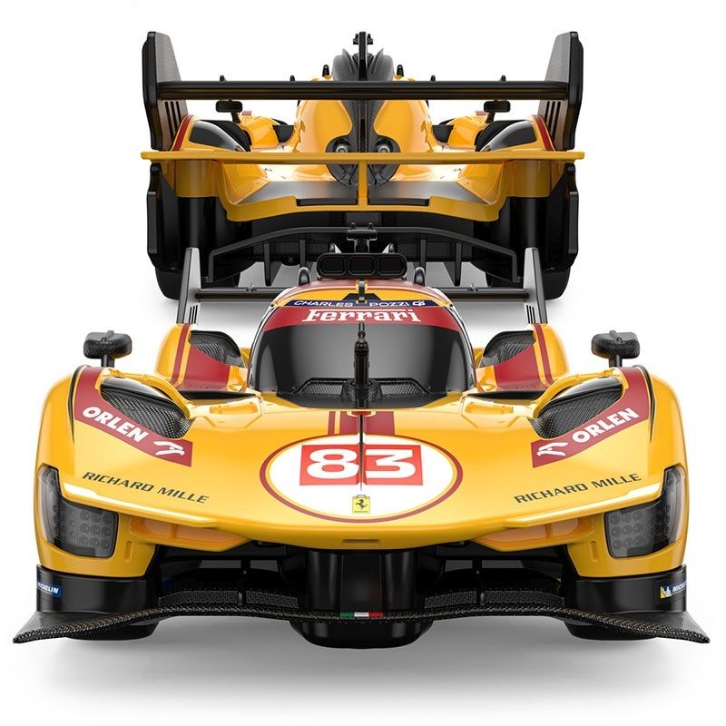 Copilul dumneavoastra se poate juca in voie cu masina cu telecomanda Ferarri 499P N83 GALBEN, scara 1 la 24, oferita de brandul international Rastar. Nicio cursa nu este imposibil de castigat cu acesta masinuta, replica oficiala cu licenta a modelului original, construita cu mare atentie la detalii. Masinuta are proportiile ideale pentru momente pline de distractie si amuzament, avand dimensiunile in centimetri dupa cum urmeaza 19*9.5*5.3.Masinuta functioneaza pe frecventa de 2.4G.Alimentarea se face astfel pentru masinuta sunt necesare 3 baterii tip AA , iar pentru telecomanda 2 tip AA.Masinuta se poate deplasa in toate directiile inainte, inapoi, stanga sau dreapta. Masina cu telecomanda Ferarri 499P N83 GALBEN, scara 1 la 24, poate rula cu o viteza aproximativa de 10km/h, are tractiune 2WD, anvelope de cauciuc, posibilitate de reglaj a directiei direct pe sasiu si o raza de actiune a telecomenzii de circa 20 de metri.