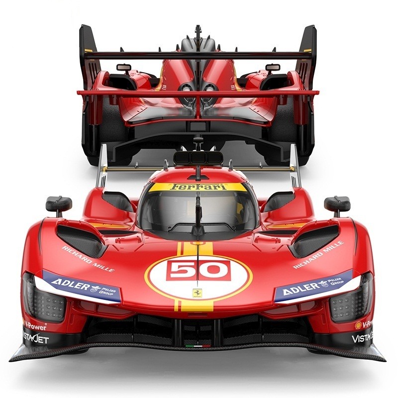 Copilul dumneavoastra se poate juca in voie cu masina cu telecomanda Ferrari 499P, scara 1 la 14, oferita de brandul international Rastar. Nicio cursa nu este imposibil de castigat cu acesta masinuta, replica oficiala cu licenta a modelului original, construita cu mare atentie la detalii. Masinuta are proportiile ideale pentru momente pline de distractie si amuzament. Masinuta functioneaza pe frecventa de 2.4G.Alimentarea se face astfel pentru masinuta sunt necesare 5 baterii tip AA , iar pentru telecomanda 2 tip AA.Masinuta se poate deplasa in toate directiile inainte, inapoi, stanga sau dreapta. Masina cu telecomanda Ferrari F12, scara 1 la 14, poate rula cu o viteza aproximativa de 10km/h, are tractiune 2WD, anvelope de cauciuc, posibilitate de reglaj a directiei direct pe sasiu si o raza de actiune a telecomenzii de circa 20 de metri.Acesta masinuta are si o functie suplimentara care face ca farurile si stopurile masinutei sa lumineze.