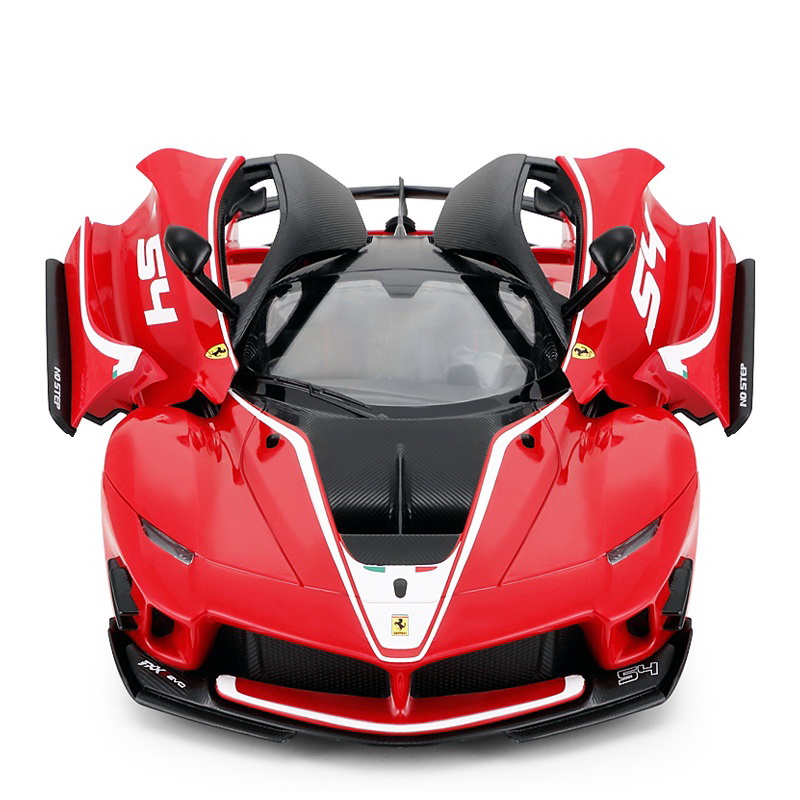 Copilul dumneavoastra se poate juca in voie cu masina cu telecomanda Ferarri FXX K Evo, scara 1 la 14, oferita de brandul international Rastar. Nicio cursa nu este imposibil de castigat cu acesta masinuta, replica oficiala cu licenta a modelului original, construita cu mare atentie la detalii. Masinuta are proportiile ideale pentru momente pline de distractie si amuzament, avand dimensiunile in centimetri dupa cum urmeaza 35*14.6*8.Masinuta functioneaza pe frecventa de 2.4G.Alimentarea se face astfel pentru masinuta sunt necesare 5 baterii tip AA , iar pentru telecomanda 2 tip AA.Masinuta se poate deplasa in toate directiile inainte, inapoi, stanga sau dreapta. Portierele masinutei se pot deschideMasina cu telecomanda Ferarri FXX K Evo, scara 1 la 14, poate rula cu o viteza aproximativa de 10km/h, are tractiune 2WD, anvelope de cauciuc, posibilitate de reglaj a directiei direct pe sasiu si o raza de actiune a telecomenzii de circa 20 de metri.Acesta masinuta are si o functie suplimentara care face ca farurile si stopurile masinutei sa lumineze.