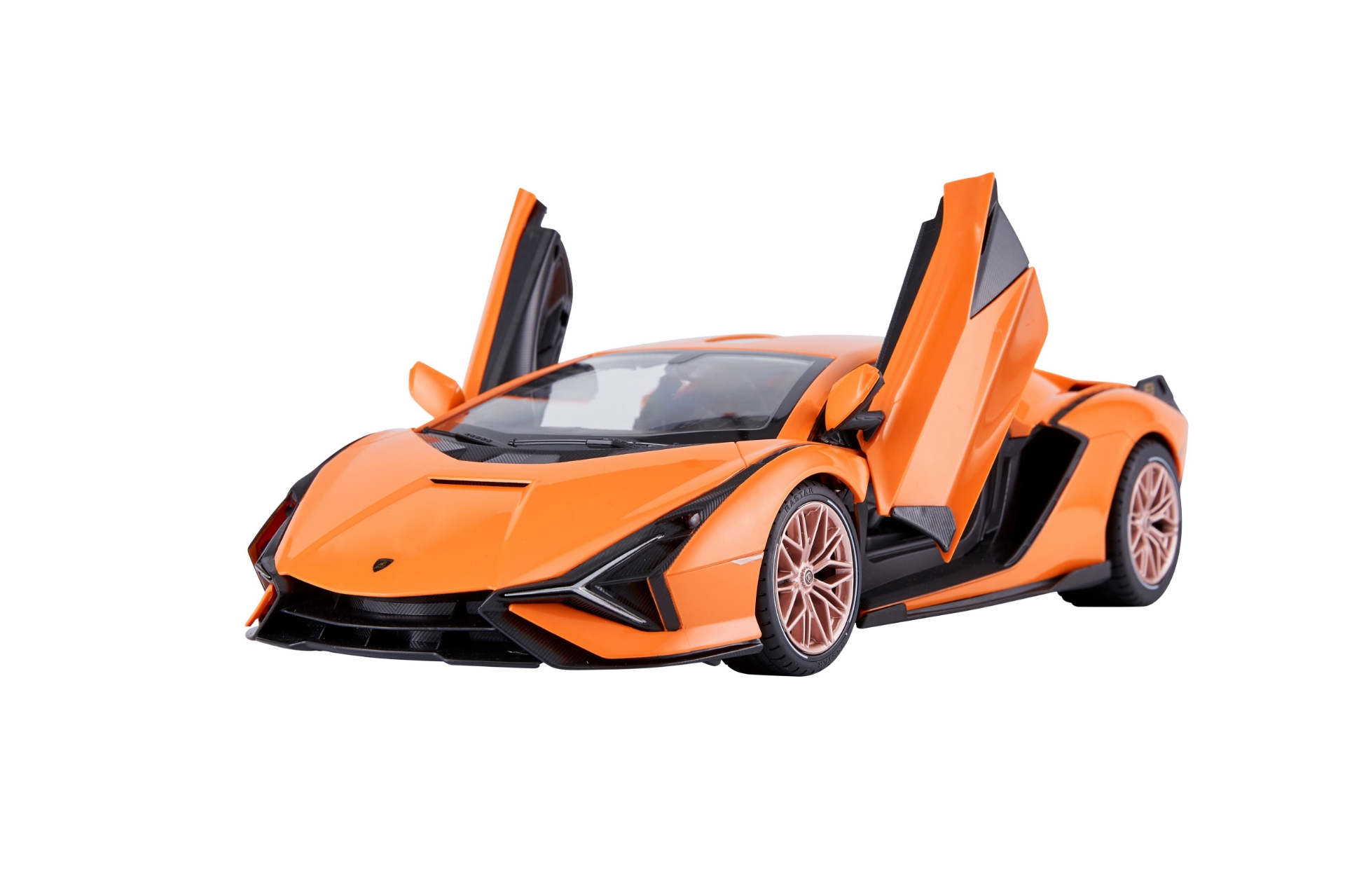Copilul dumneavoastra se poate juca in voie cu masina cu telecomanda Lamborghini Sian, scara 1 la 14, oferita de brandul international Rastar. Nicio cursa nu este imposibil de castigat cu acesta masinuta, replica oficiala cu licenta a modelului original, construita cu mare atentie la detalii. Masinuta are proportiile ideale pentru momente pline de distractie si amuzament, avand dimensiunile in centimetri dupa cum urmeaza 35.5*16.3*8.2.Masinuta functioneaza pe frecventa de 2.4G.Alimentarea se face astfel pentru masinuta sunt necesare 5 baterii tip AA , iar pentru telecomanda 2 tip AA.Masinuta se poate deplasa in toate directiile inainte, inapoi, stanga sau dreapta. Masina cu telecomanda Lamborghini Sian, scara 1 la 14, poate rula cu o viteza aproximativa de 10km/h, are tractiune 2WD, anvelope de cauciuc, posibilitate de reglaj a directiei direct pe sasiu si o raza de actiune a telecomenzii de circa 20 de metri.Acesta masinuta are si o functie suplimentara care face ca farurile si stopurile masinutei sa lumineze. Portierele se pot actiona cu mana, avand un sistem de deshidere special, LSD (LamboStyleDoors).