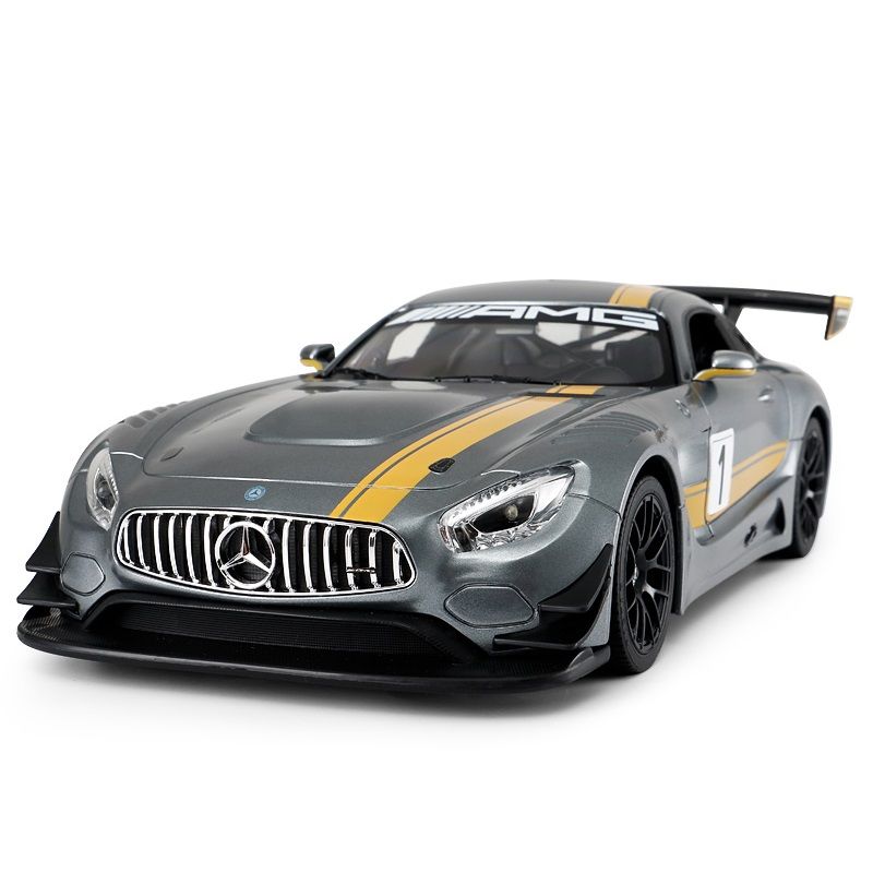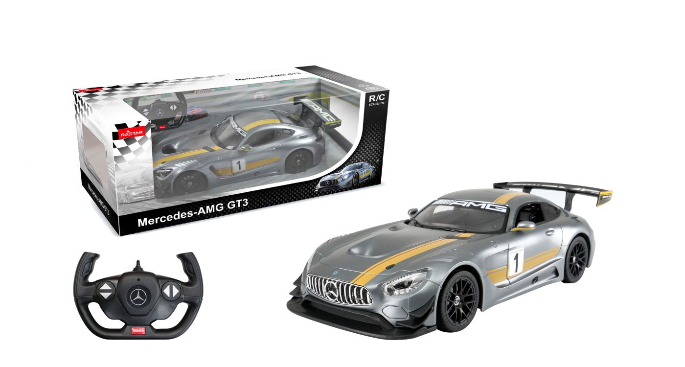 Copilul dumneavoastra se poate juca in voie cu masina cu telecomanda MERCEDES-AMG GT3, scara 1 la 14, oferita de brandul international Rastar. Nicio cursa nu este imposibil de castigat cu acesta masinuta, replica oficiala cu licenta a modelului original, construita cu mare atentie la detalii. Masinuta are proportiile ideale pentru momente pline de distractie si amuzament.Masinuta functioneaza pe frecventa de 2.4G.Alimentarea se face astfel pentru masinuta sunt necesare 5 baterii tip AA , iar pentru telecomanda 2 tip AA.Masinuta se poate deplasa in toate directiile inainte, inapoi, stanga sau dreapta. Masina cu telecomanda MERCEDES-AMG GT3, scara 1 la 14, poate rula cu o viteza aproximativa de 10km/h, are tractiune 2WD, anvelope de cauciuc, posibilitate de reglaj a directiei direct pe sasiu si o raza de actiune a telecomenzii de circa 20 de metri.
