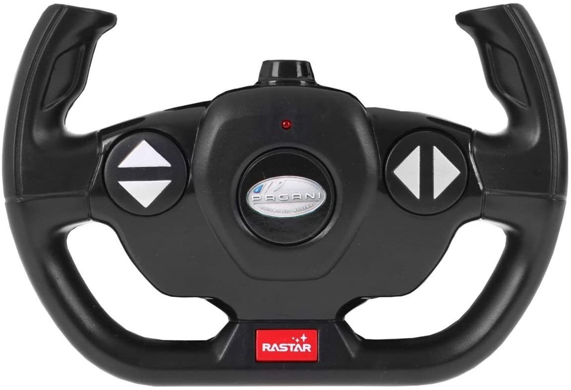 Copilul dumneavoastra se poate juca in voie cu masina cu telecomanda Pagani Zonda R, scara 1 la 14, oferita de brandul international Rastar. Nicio cursa nu este imposibil de castigat cu acesta masinuta, replica oficiala cu licenta a modelului original, construita cu mare atentie la detalii. Masinuta are proportiile ideale pentru momente pline de distractie si amuzament, avand dimensiunile in centimetri dupa cum urmeaza 34.9*14.8*8.4.Masinuta functioneaza pe frecventa de 2.4G.Alimentarea se face astfel pentru masinuta sunt necesare 5 baterii tip AA , iar pentru telecomanda 2 tip AA.Masinuta se poate deplasa in toate directiile inainte, inapoi, stanga sau dreapta. Masina cu telecomanda Pagani Zonda R, scara 1 la 14, poate rula cu o viteza aproximativa de 10km/h, are tractiune 2WD, anvelope de cauciuc, posibilitate de reglaj a directiei direct pe sasiu si o raza de actiune a telecomenzii de circa 20 de metri.Acesta masinuta are si o functie suplimentara care face ca farurile si stopurile masinutei sa lumineze.